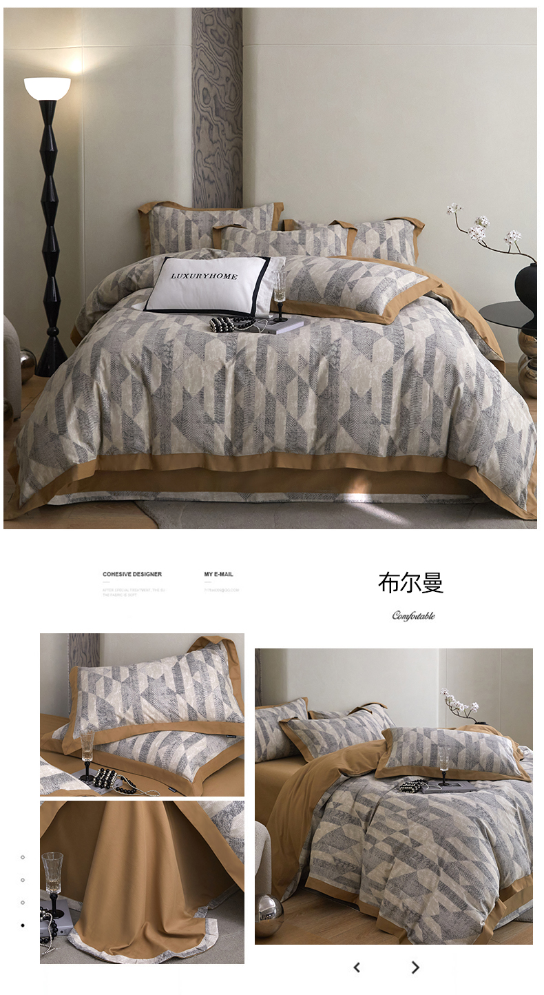 薏思家纺 2025新款全棉活性生态磨毛-印花拼角款宽边四件套 布尔曼