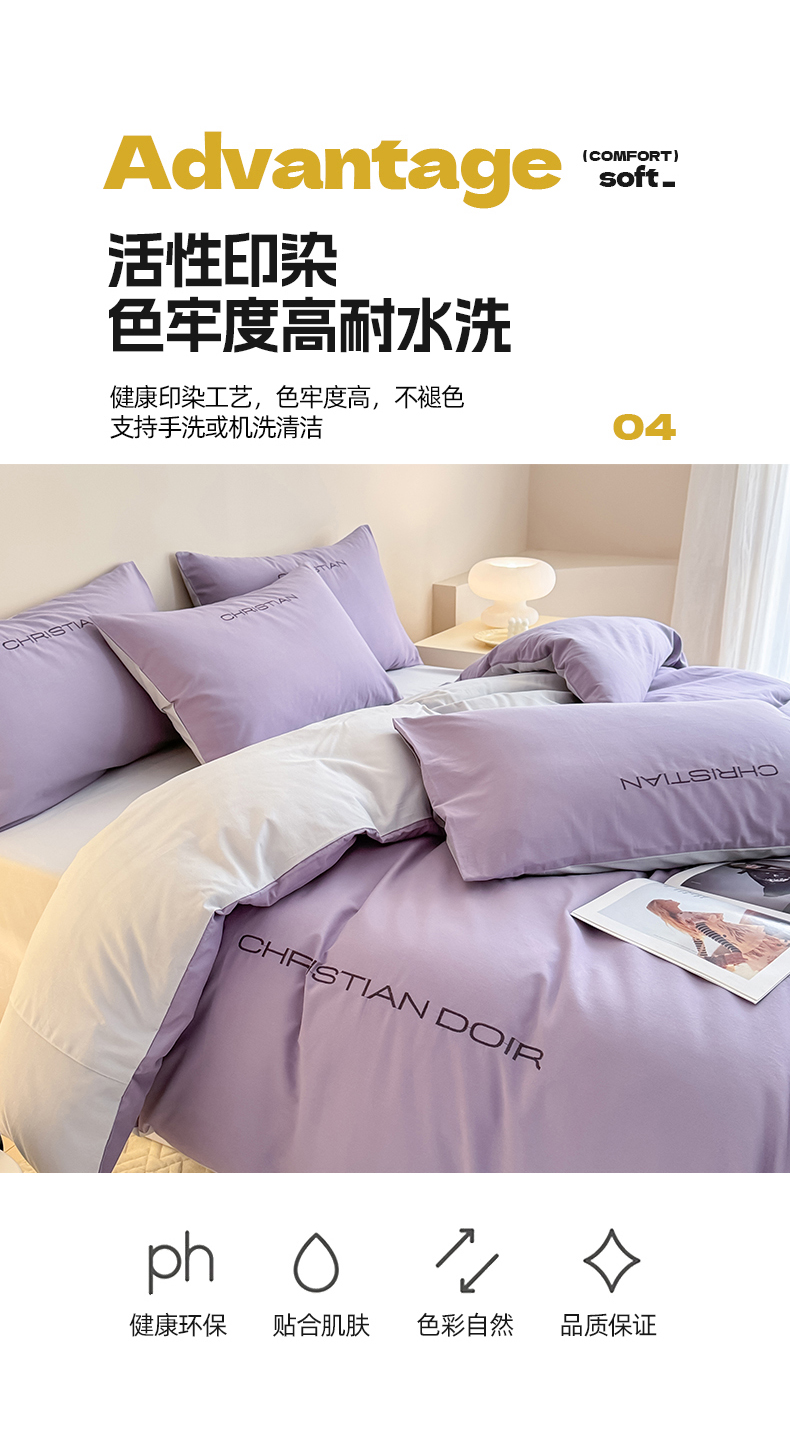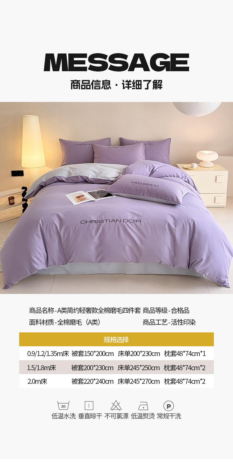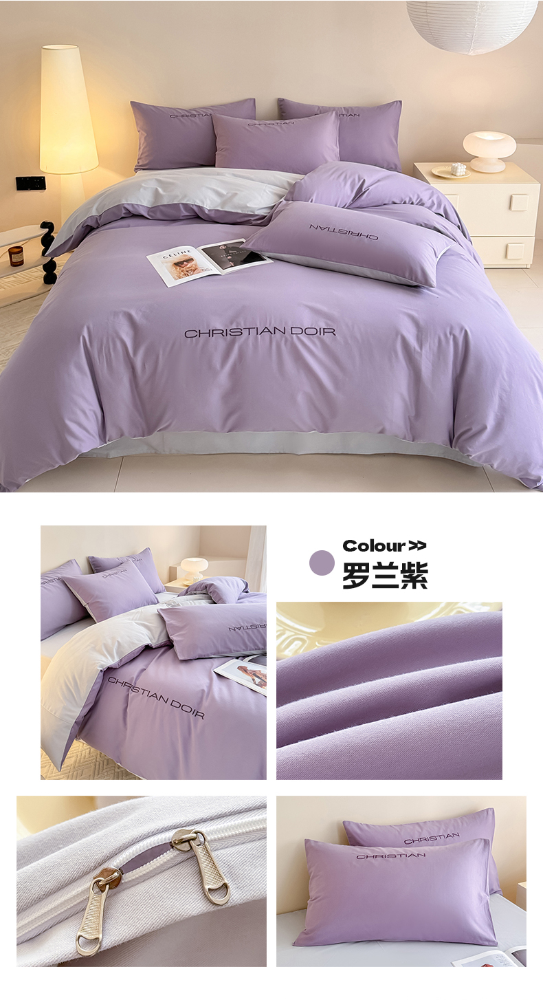 当前位置: 91家纺网 > 商品网购 > 床品套件 > 四件套 > 普通磨毛四件套 > 典曼家纺 2024新款A类简约轻奢款磨毛绣花四件套 罗兰紫