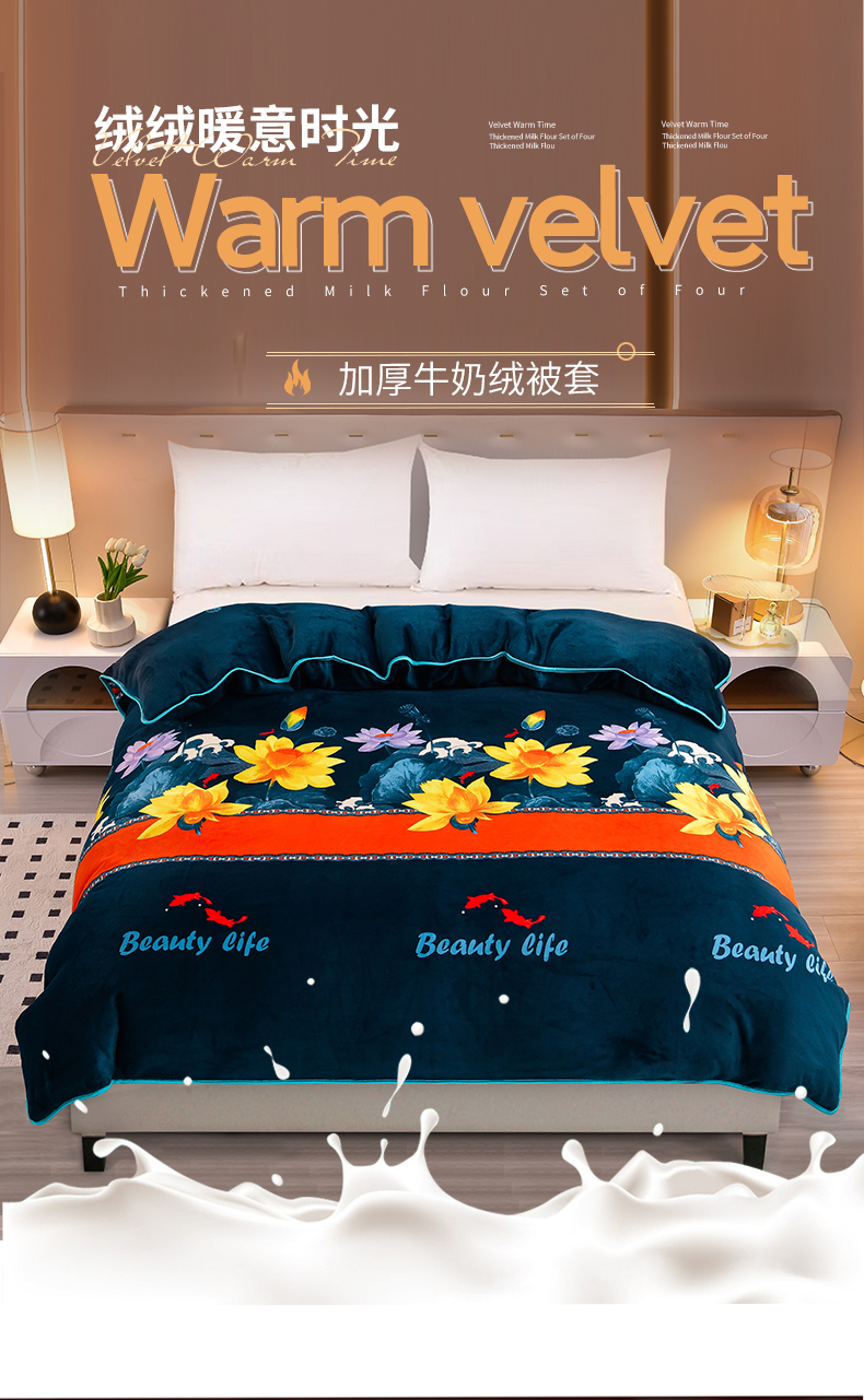 商品名称:绒品荟家纺 2025新款加厚牛奶绒单被套金貂绒法莱绒冬季法兰绒高克重被罩 荷塘月色