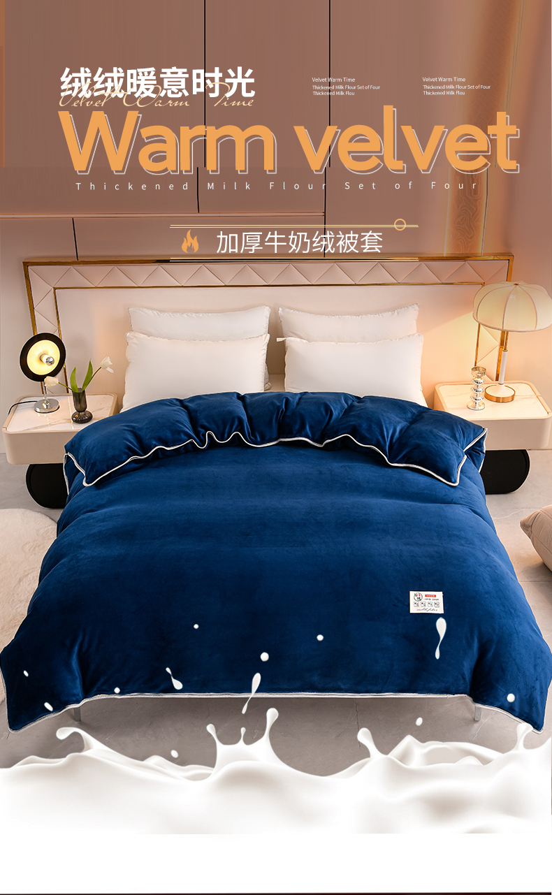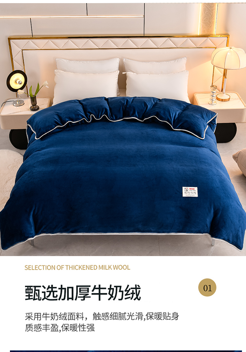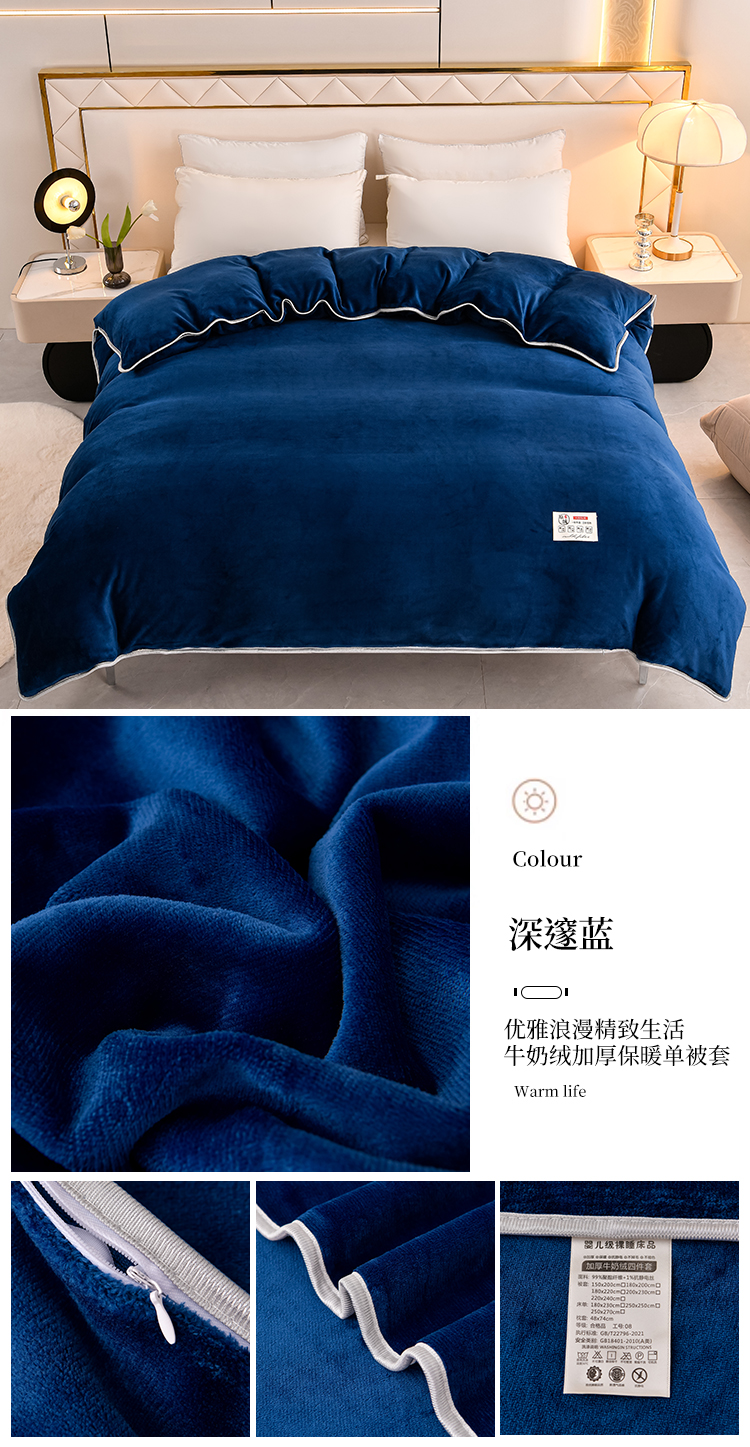 商品名称:绒品荟家纺 2025新款加厚牛奶绒单被套金貂绒法莱绒冬季法兰绒高克重被罩 深邃蓝