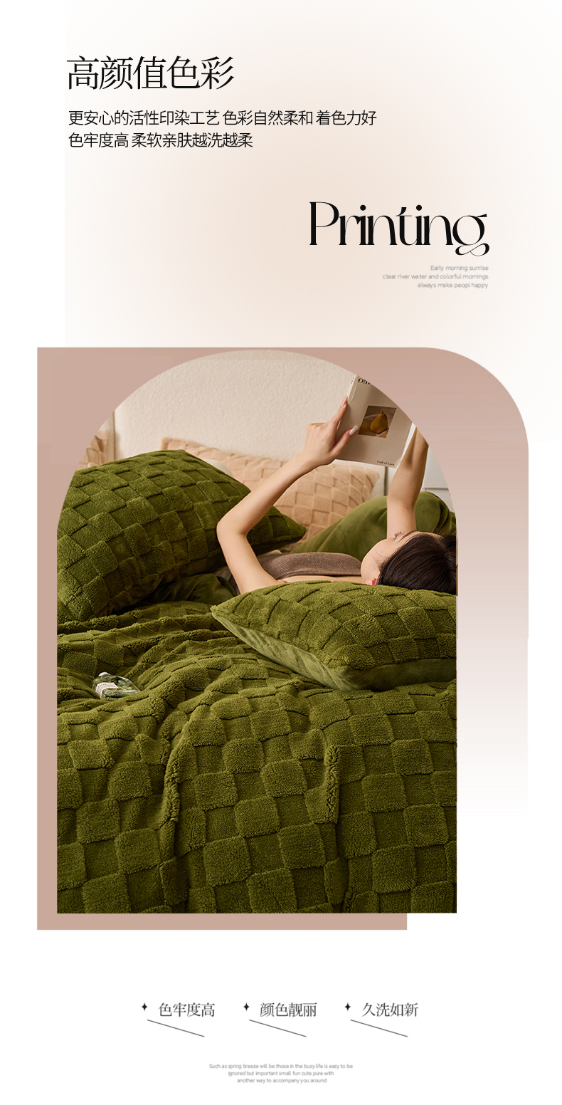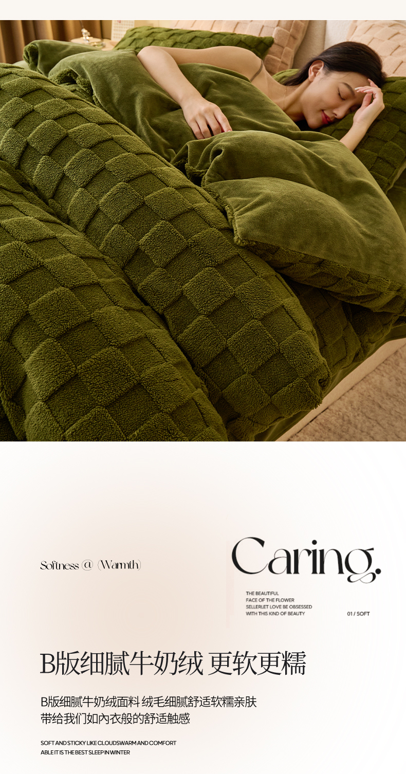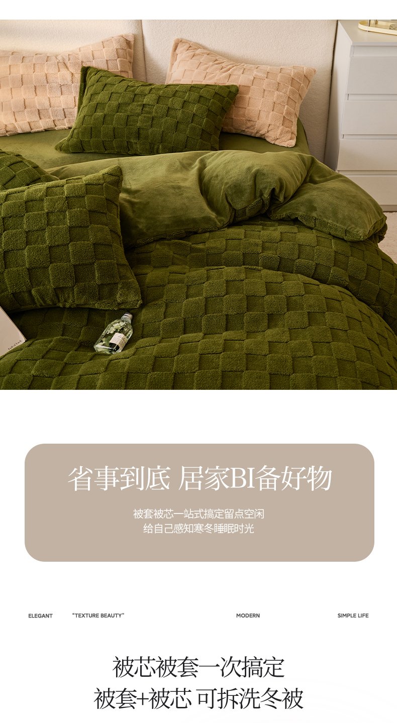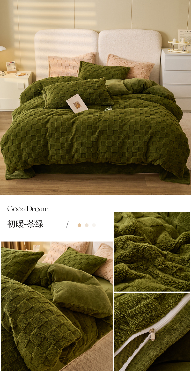 • 91家纺网 家纺一手货源 找家纺 2024新款塔芙绒牛奶绒可拆洗冬被-初暖系列 初暖-茶绿