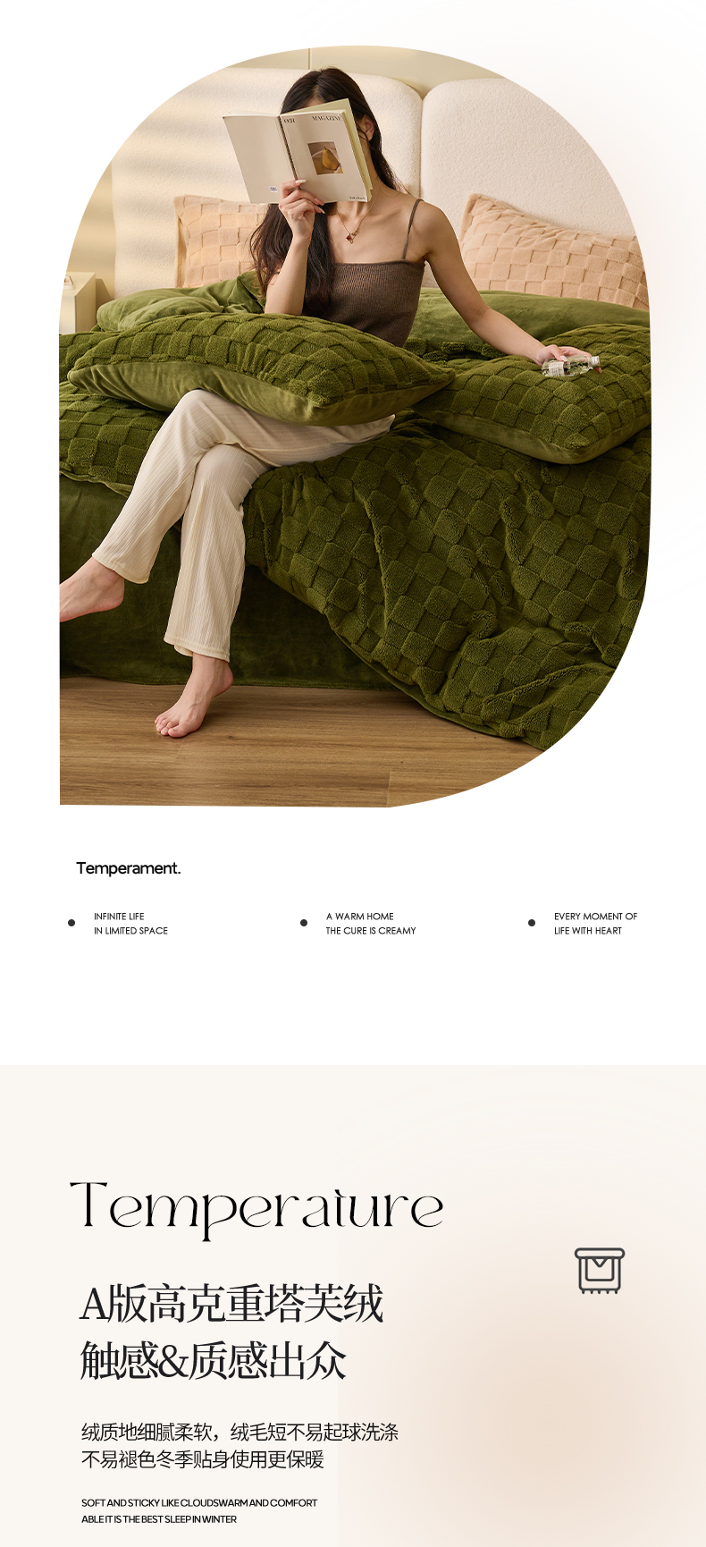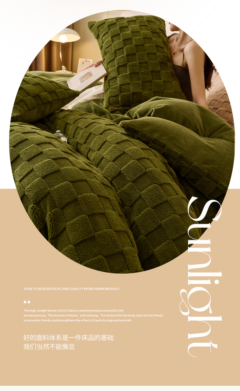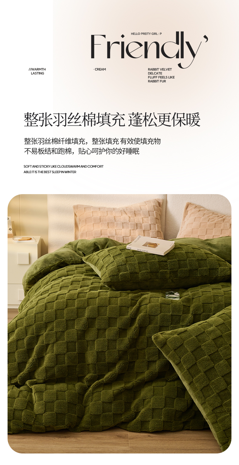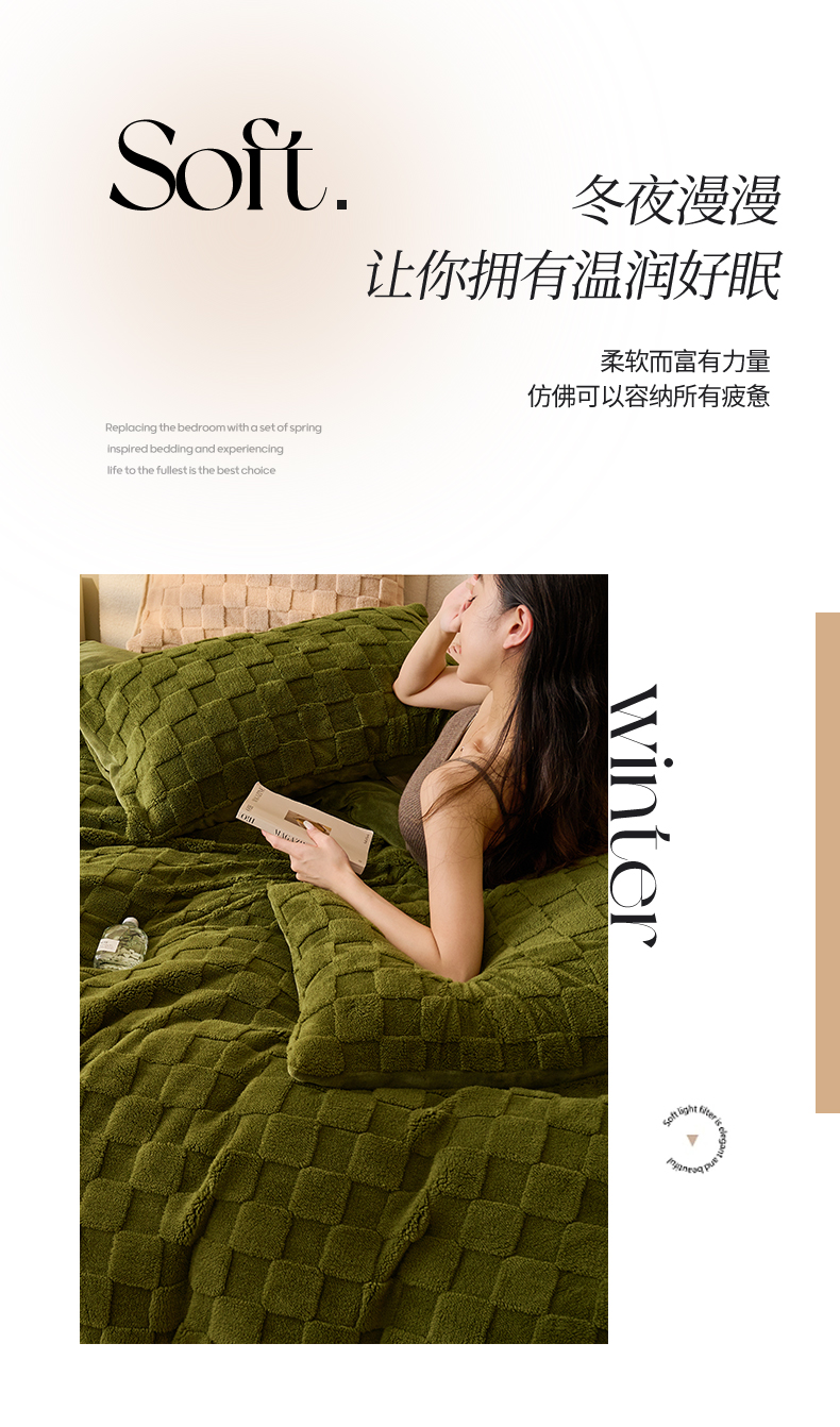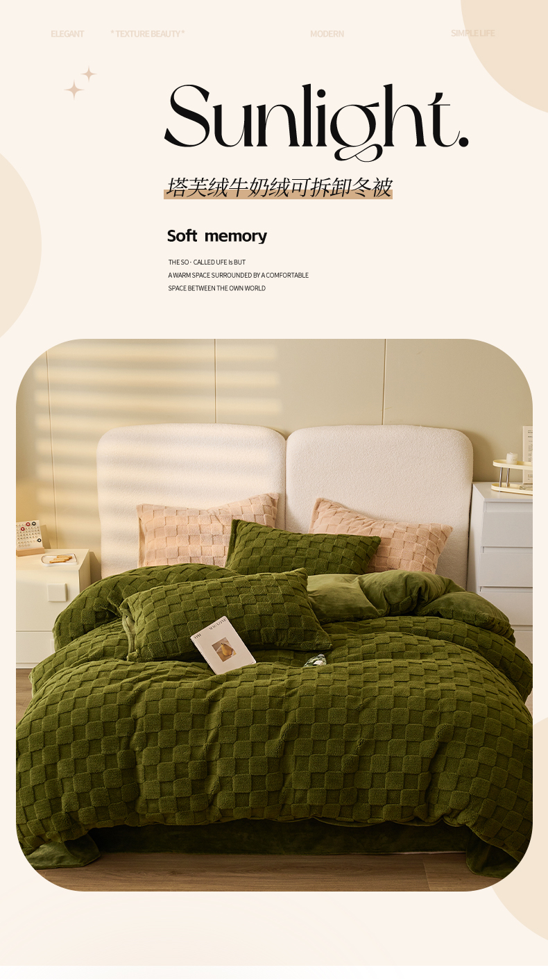 • 91家纺网 家纺一手货源 找家纺 2024新款塔芙绒牛奶绒可拆洗冬被-初暖系列 初暖-茶绿