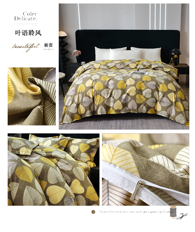 晶缦家纺 2024新款叶语系纯棉全棉生态磨毛多规格单被套 叶语聆风
