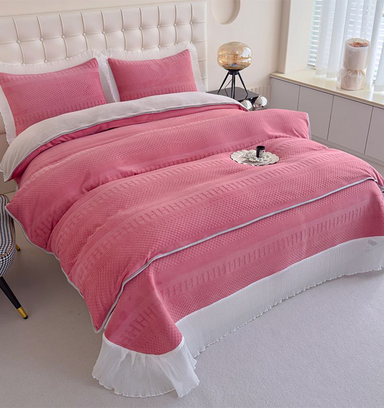 冬然家纺 2024新款雕花绒床盖系列 H-玫瑰粉