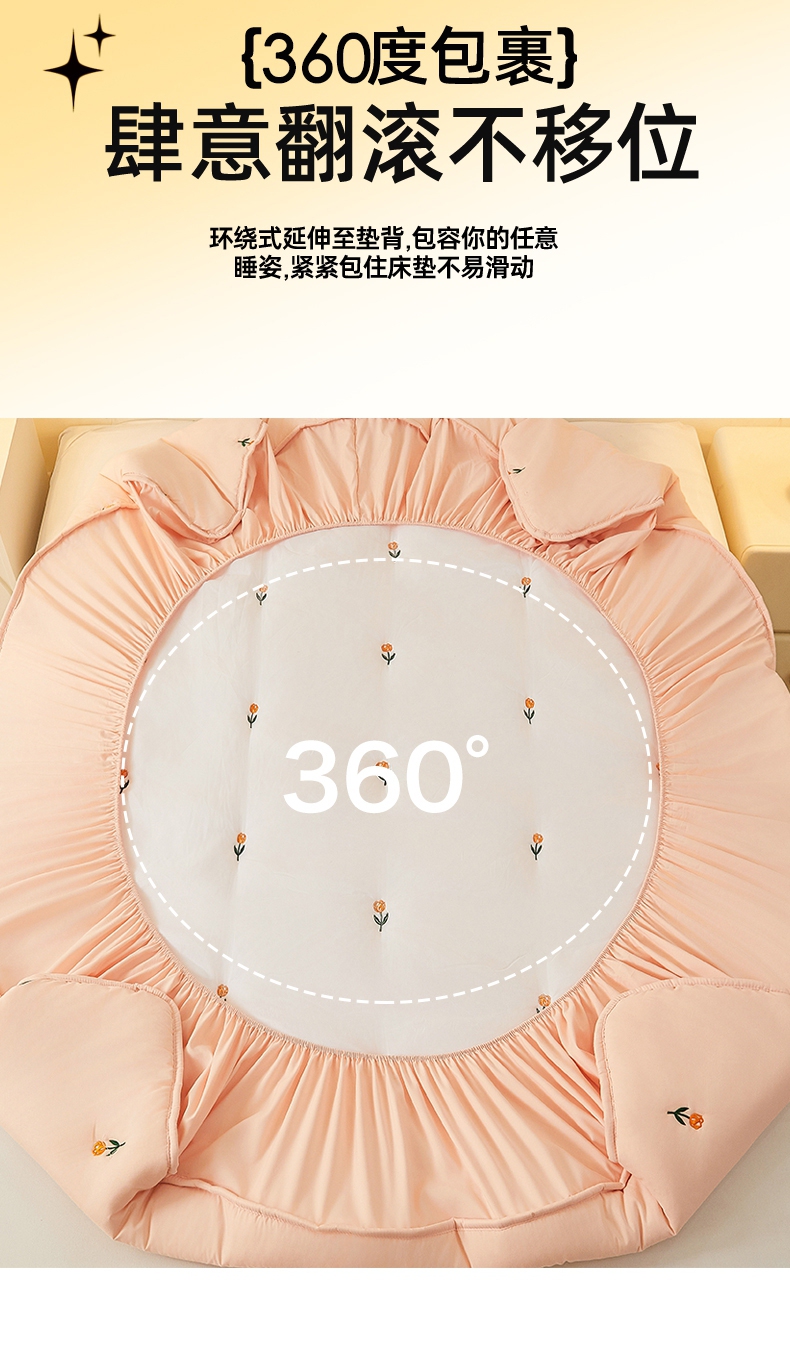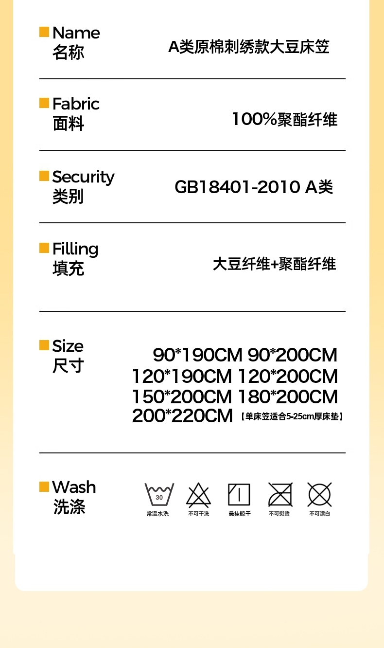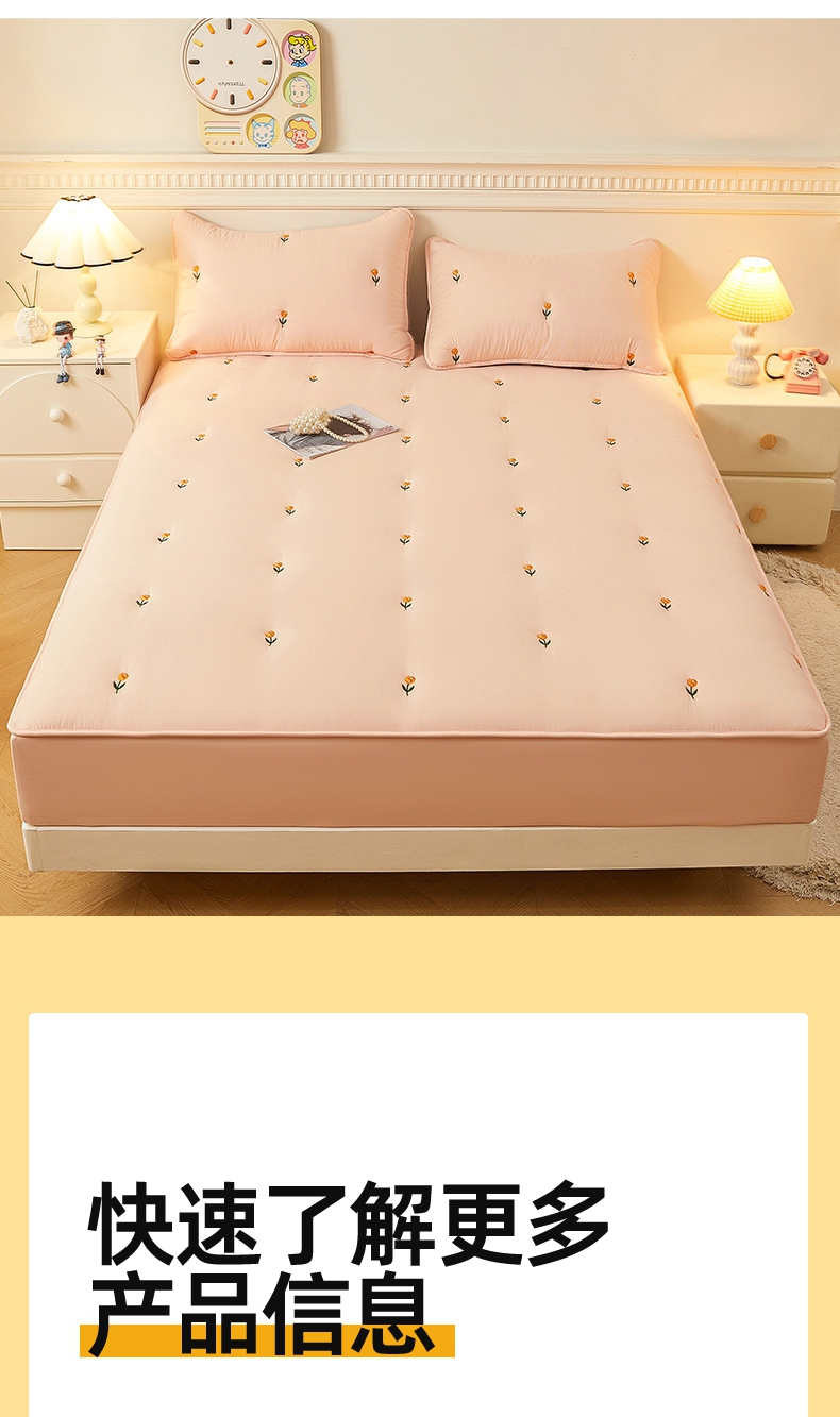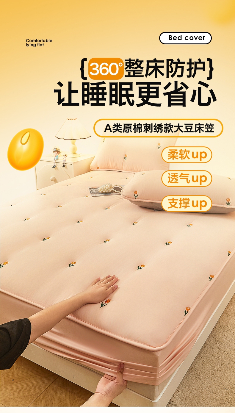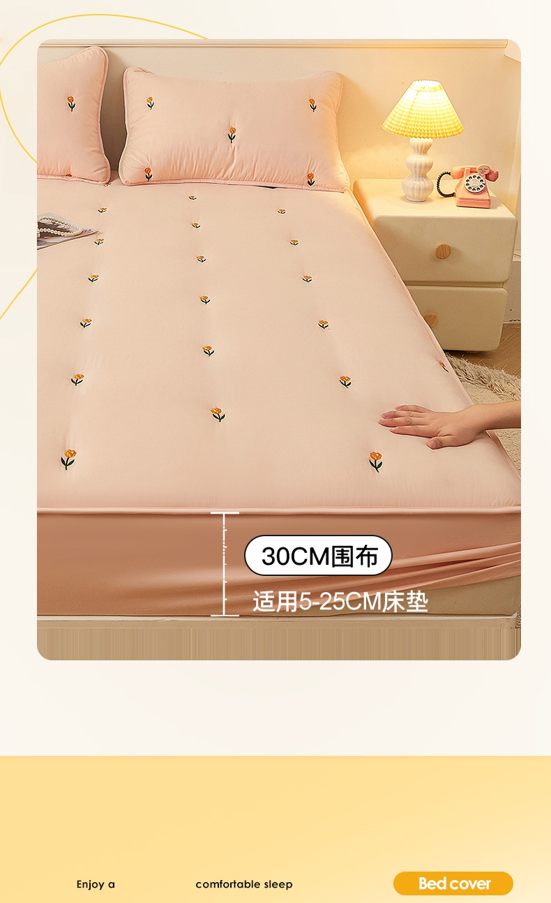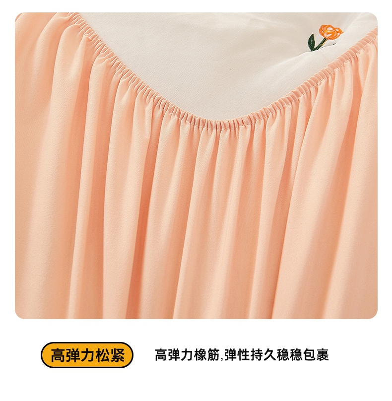 商品名称:2025新款A类水洗棉大豆刺绣床笠 小花-奶油粉