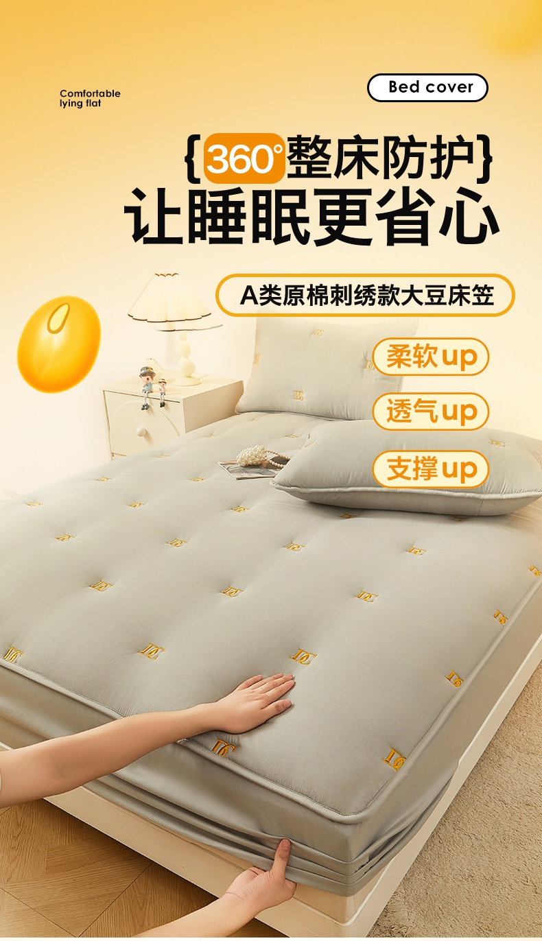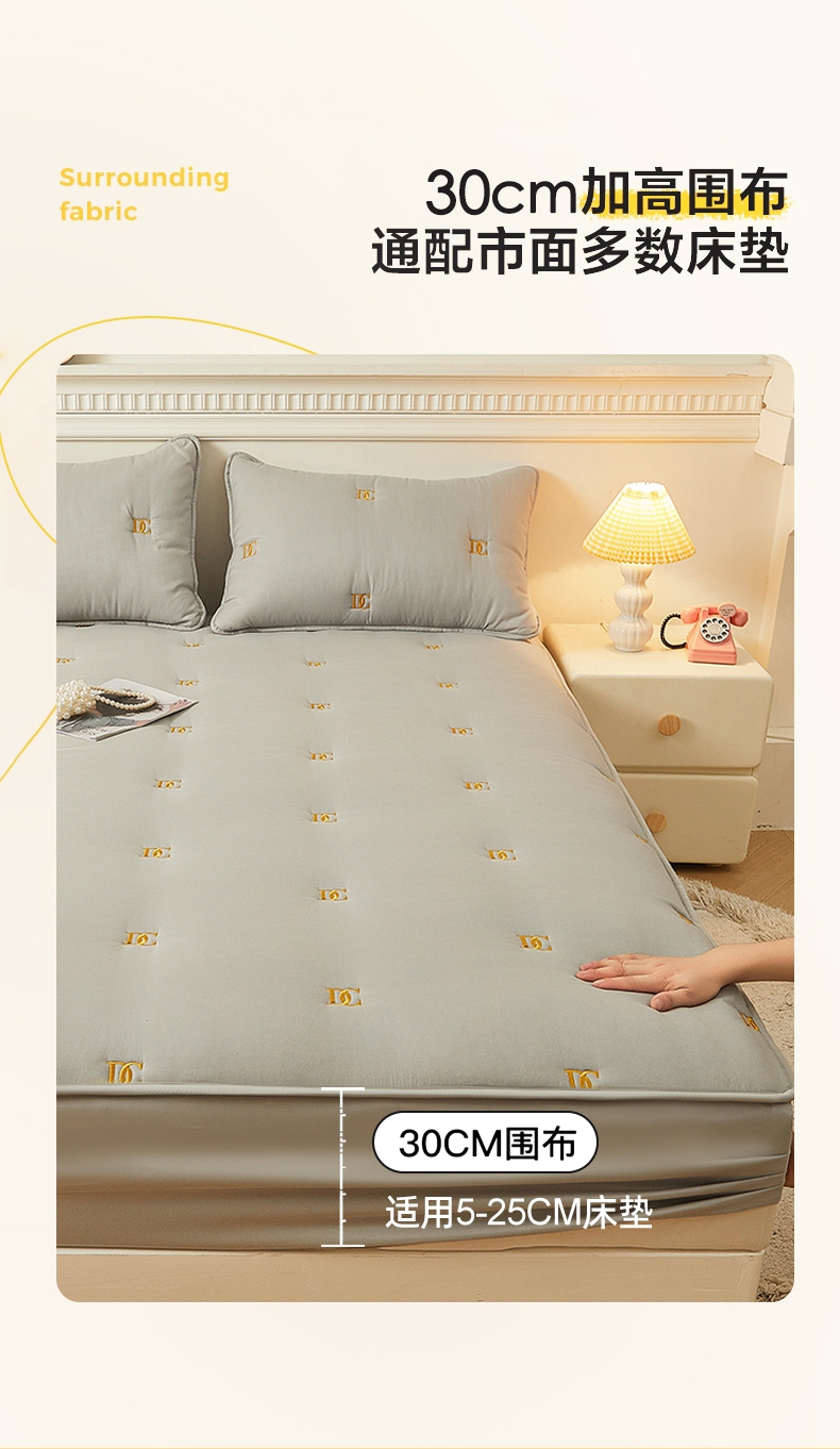 商品名称:2025新款A类水洗棉大豆刺绣床笠 DC-绅士灰