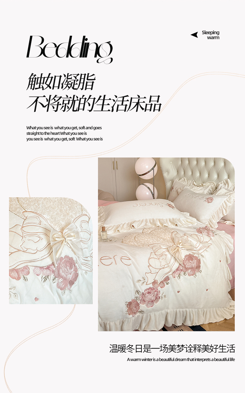 (总)爱家(原缔乐家纺) 2025新款牛奶雕花绒四件套-如梦,蝴蝶结-公主粉,蝴蝶结-梦幻紫,如梦-公主粉,如梦-奶昔白