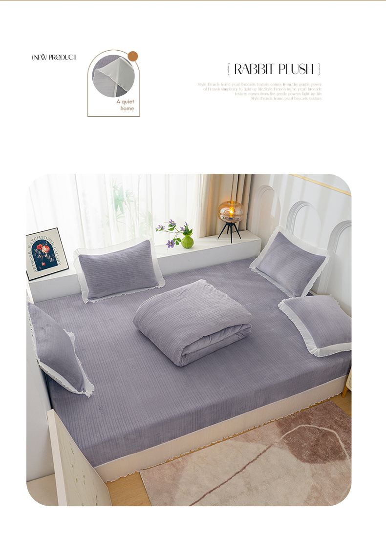 • 91家纺网 家纺一手货源 找家纺 冬然家纺 2024新款雕花绒榻榻米床盖小麦穗灰紫