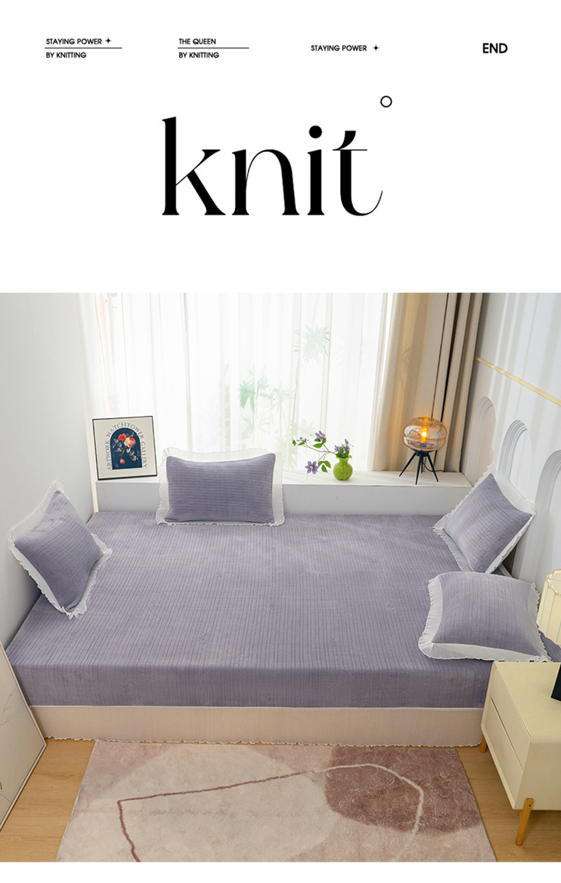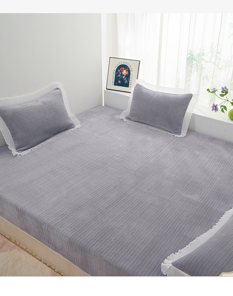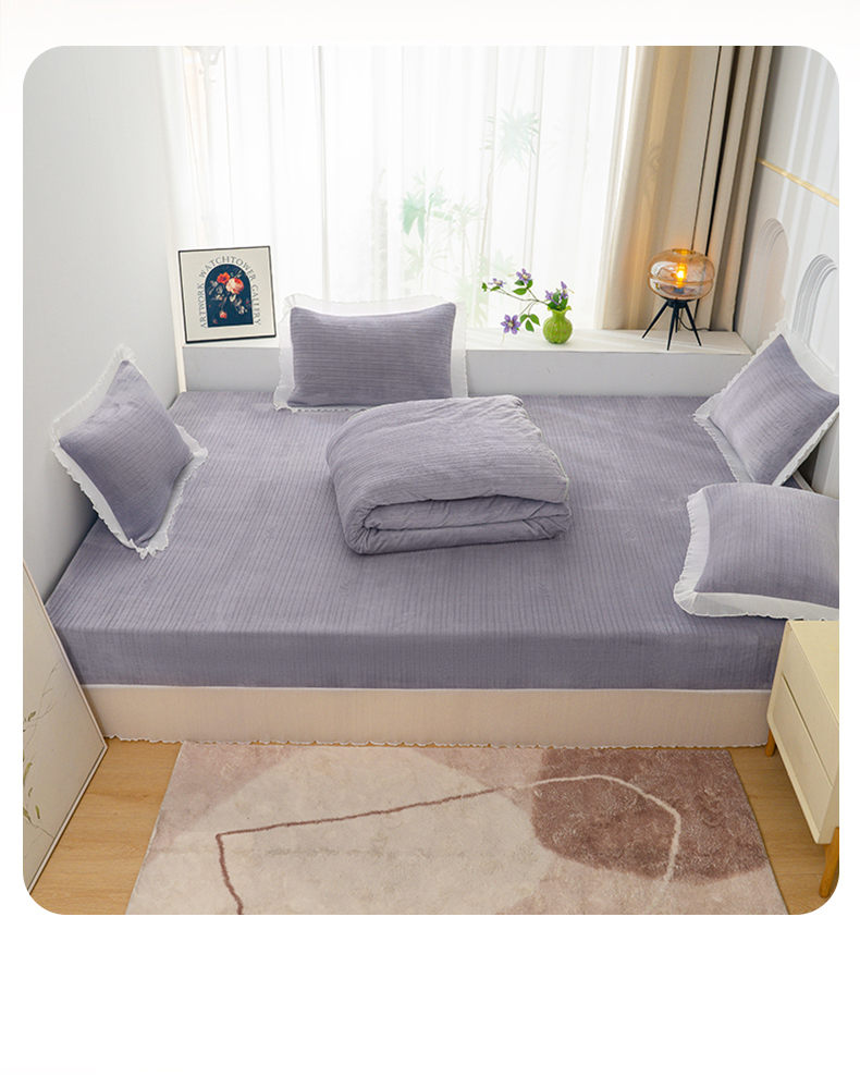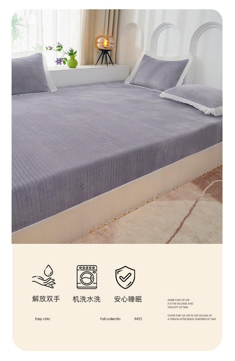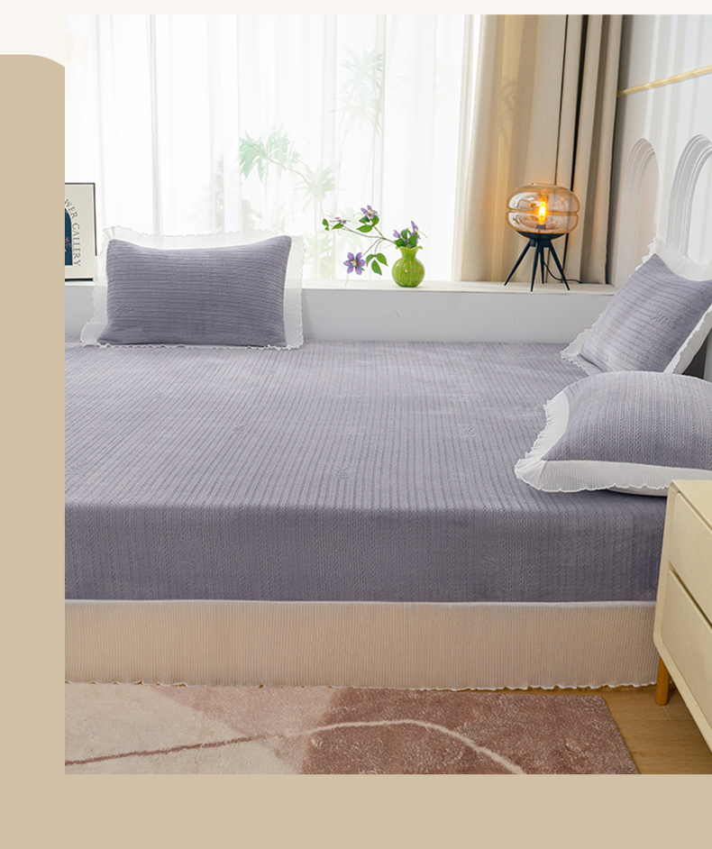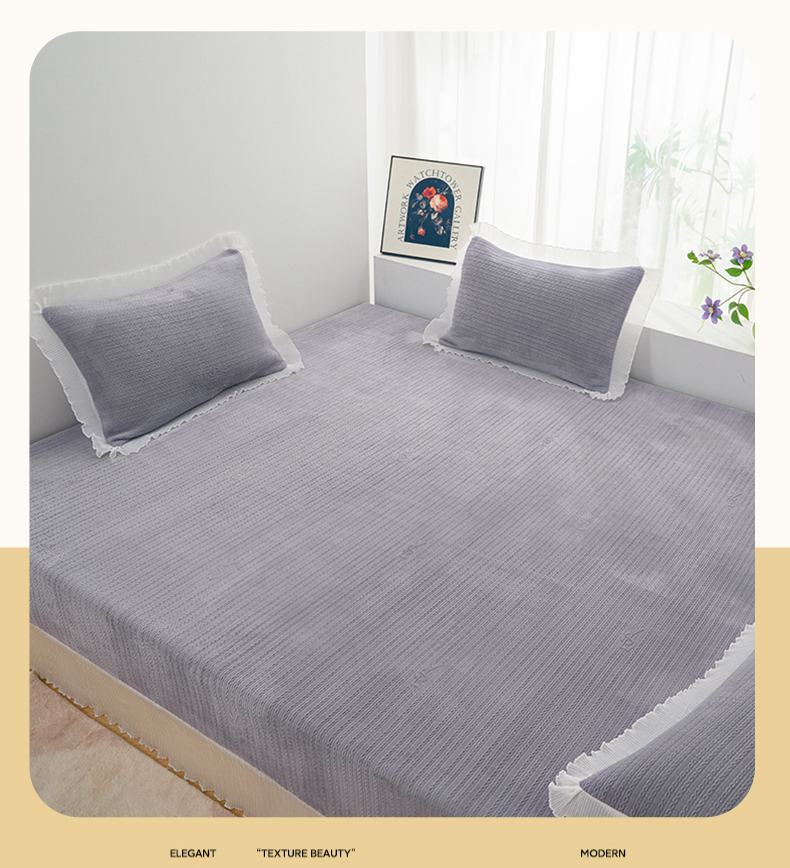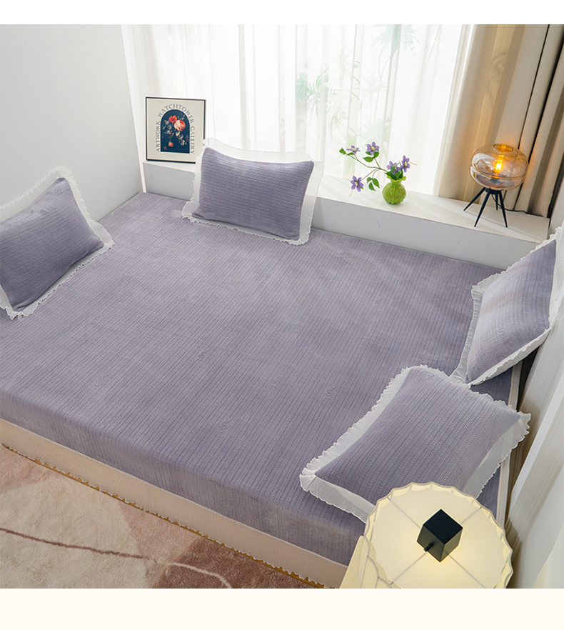 冬然家纺 2024新款雕花绒榻榻米床盖小麦穗灰紫