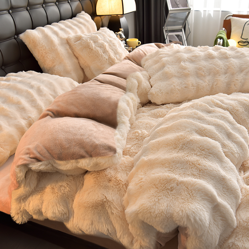 (总)同田家纺 2023新款托卡斯兔毛绒四件套,卡其,森林绿,紫灰,墨绿,棕灰,甜粉,雪灰,柔雾粉