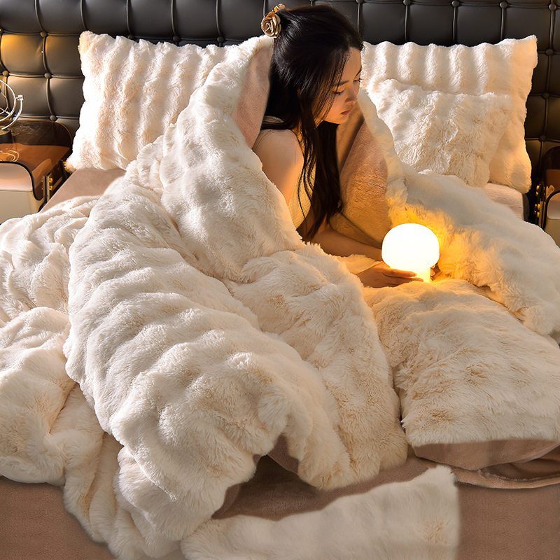 同田家纺 2023直播热款牛奶绒兔毛四件套兔兔绒牛奶绒四件套白+咖