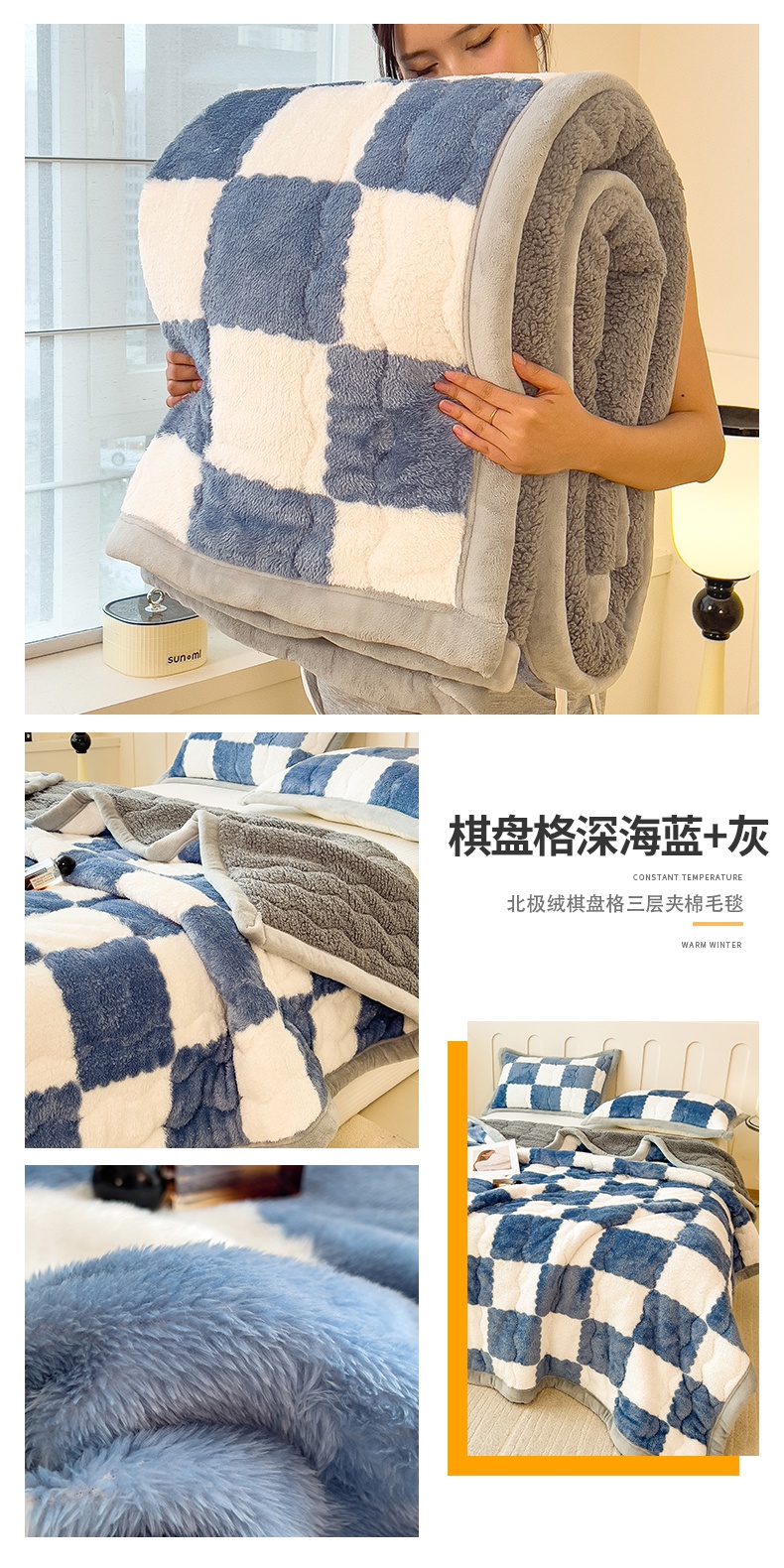 当前位置: 91家纺网 > 商品网购 > 毛毯休闲毯绒毯 > 毛毯 > 慕木家纺 2025秋冬新款A类北极绒棋盘格双面毛毯 棋盘格三层夹棉毛毯-玉粉+白