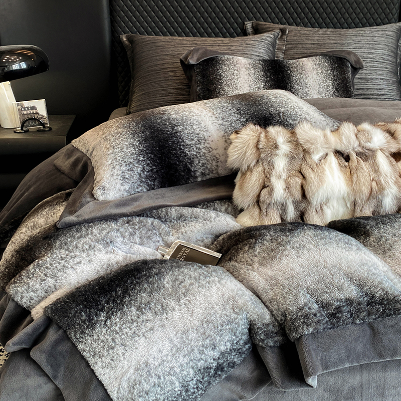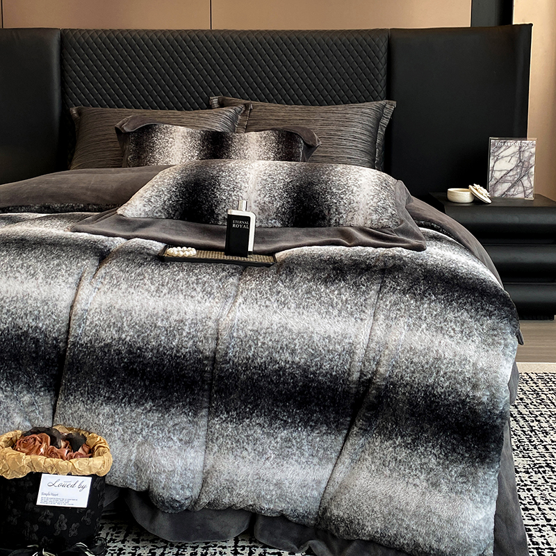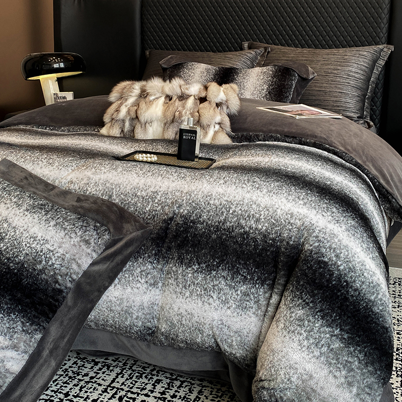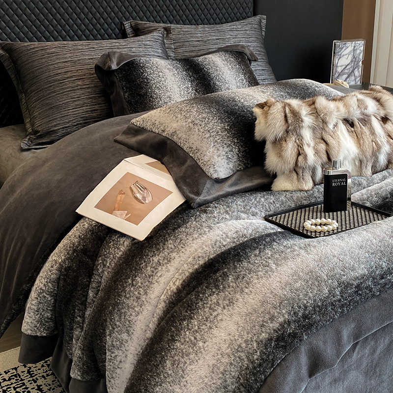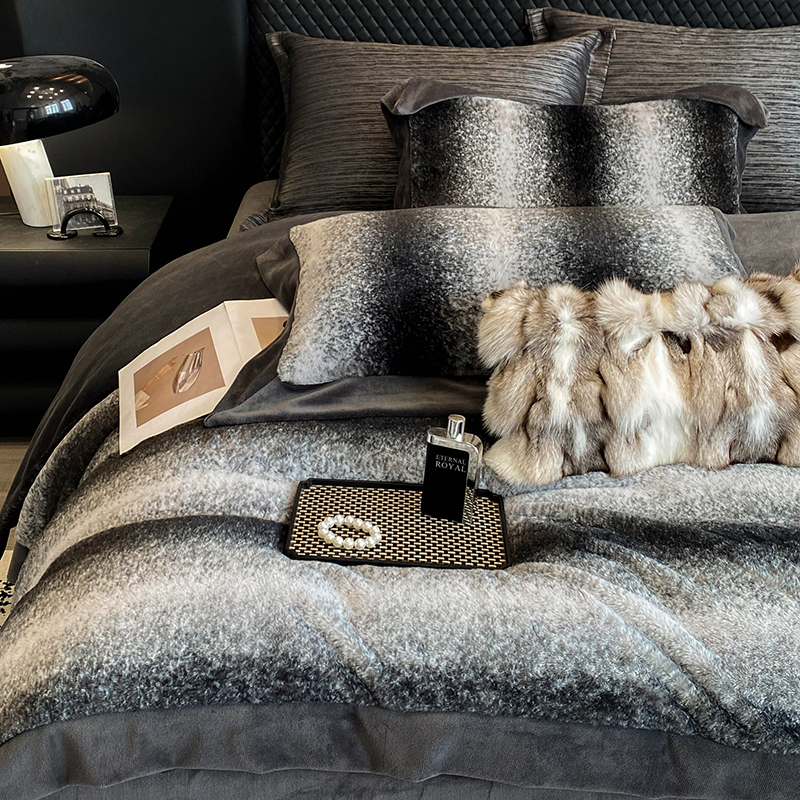 商品名称:若未家居 LOVEWE HOUSE 2025新款秋冬渐变丹麦貂四件套-卡洛斯 卡洛斯-玄灰