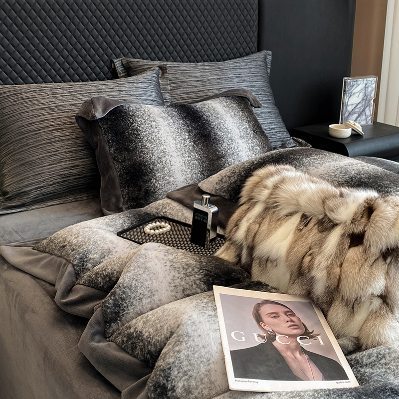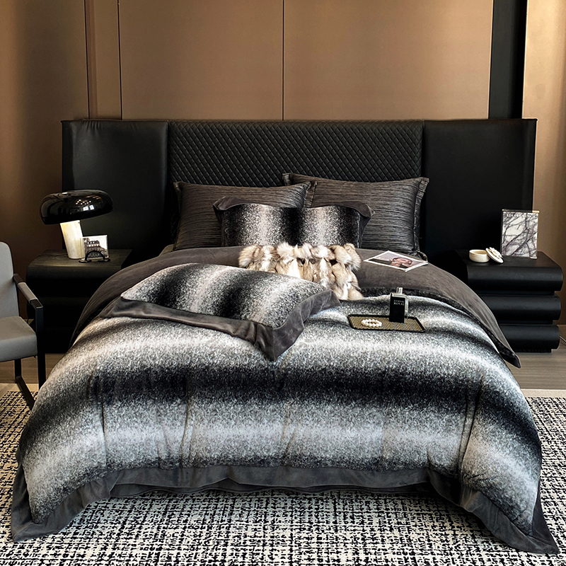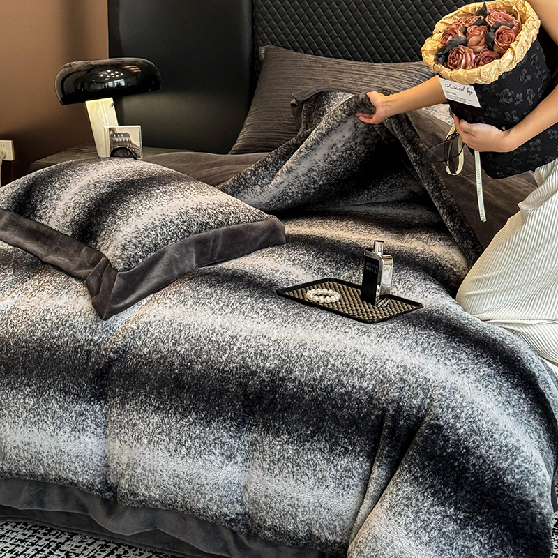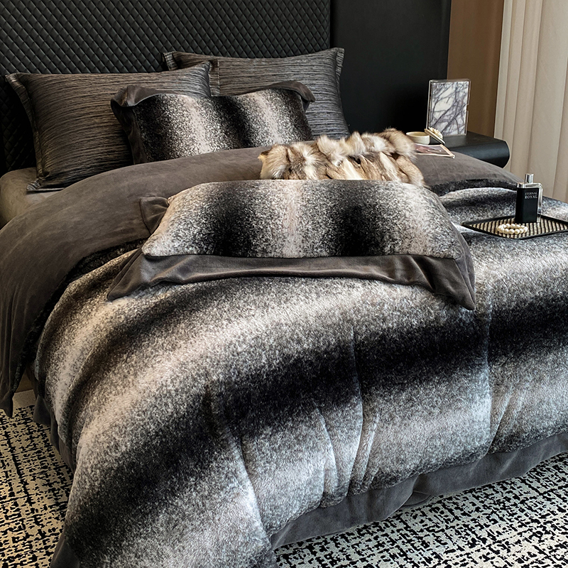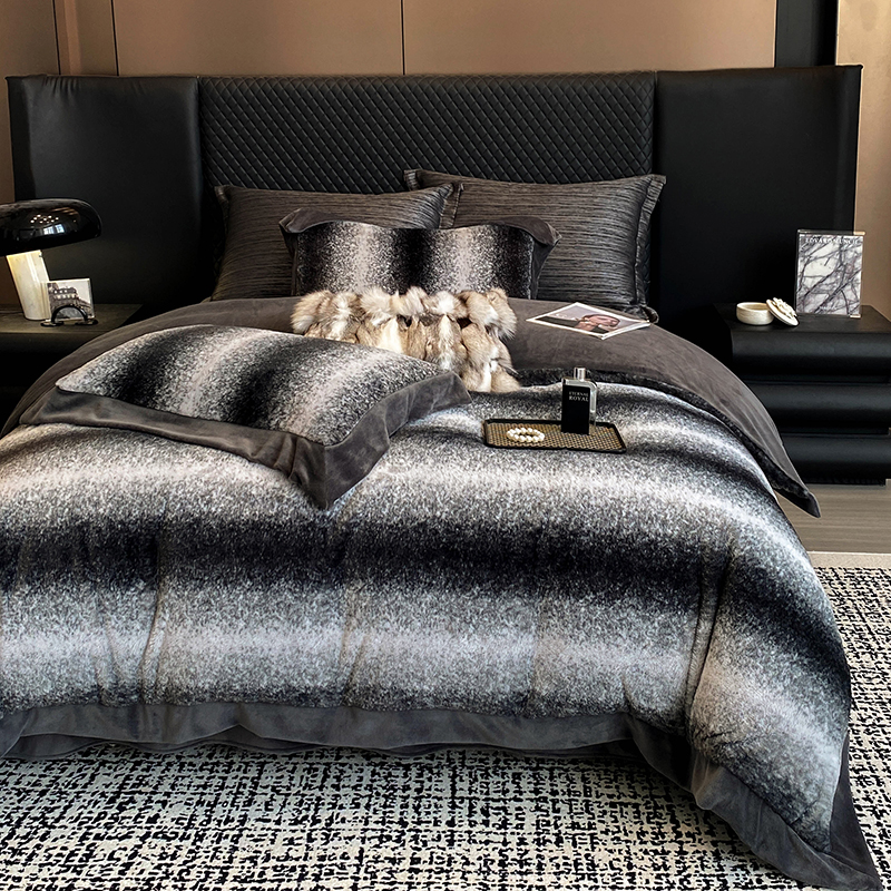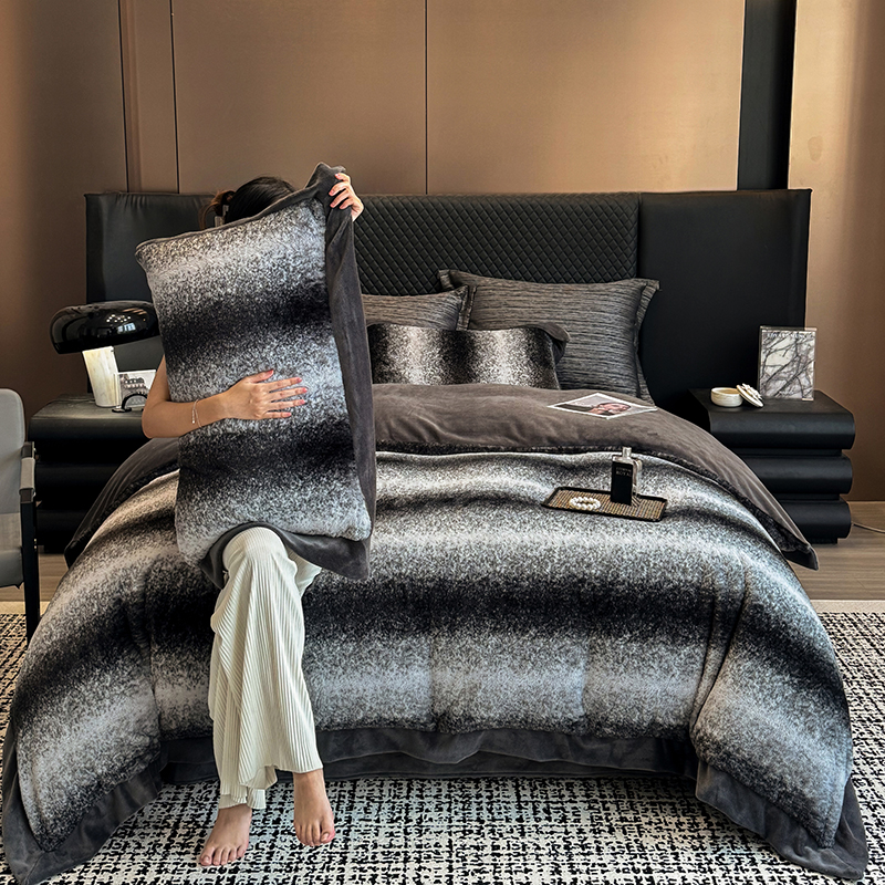 商品名称:若未家居 LOVEWE HOUSE 2025新款秋冬渐变丹麦貂四件套-卡洛斯 卡洛斯-玄灰