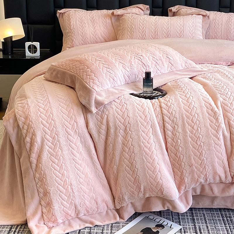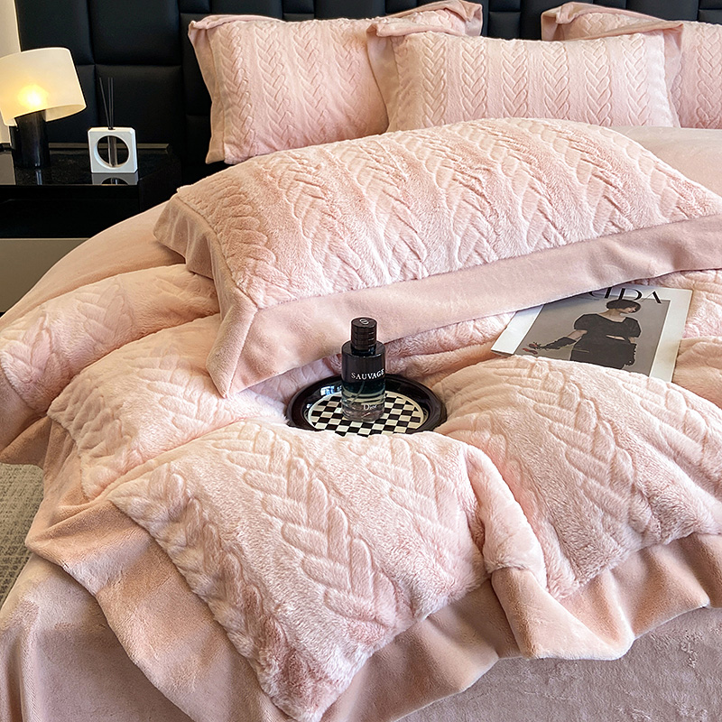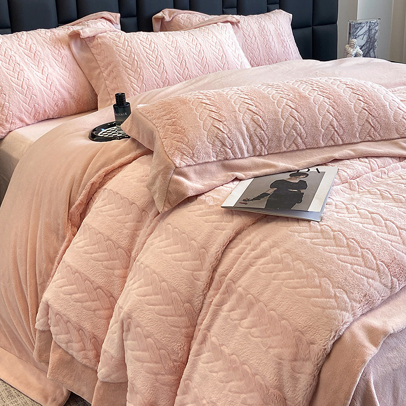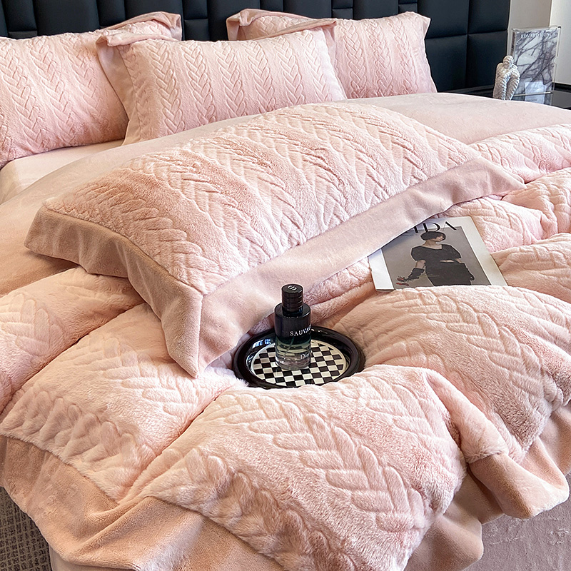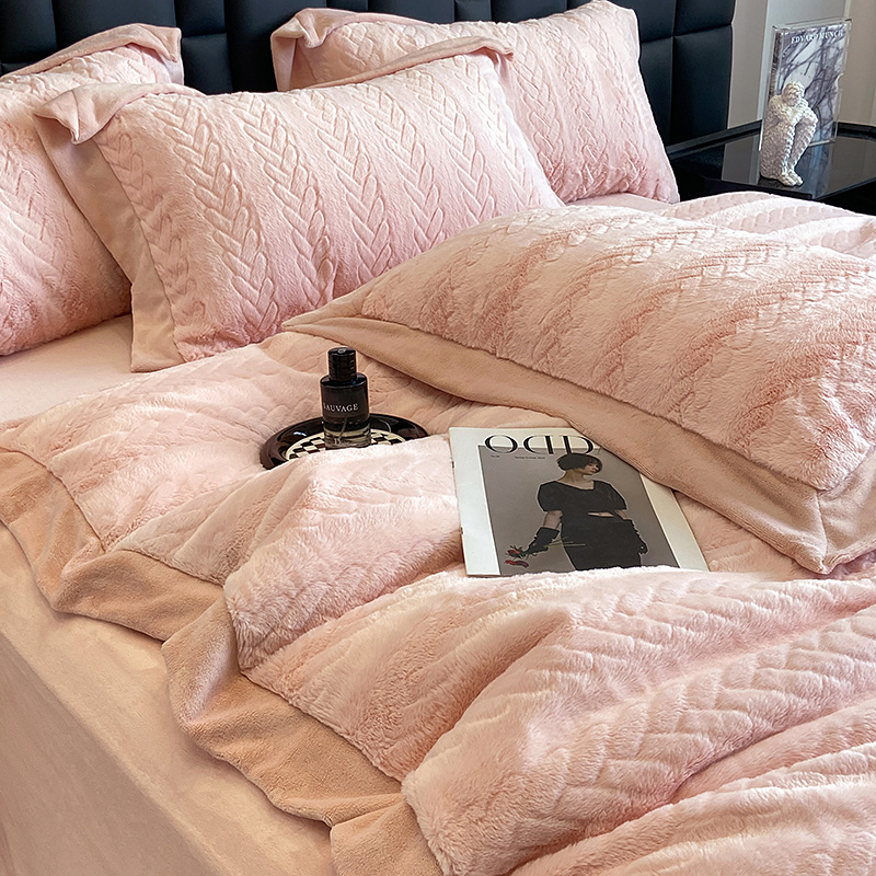 商品名称:若未家居 LOVEWE HOUSE 2025新款秋冬皮草套件A版500克丹麦貂B版250克全消光牛奶绒四件套-麦穗 麦穗-粉豆沙