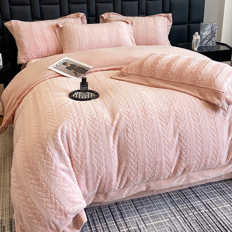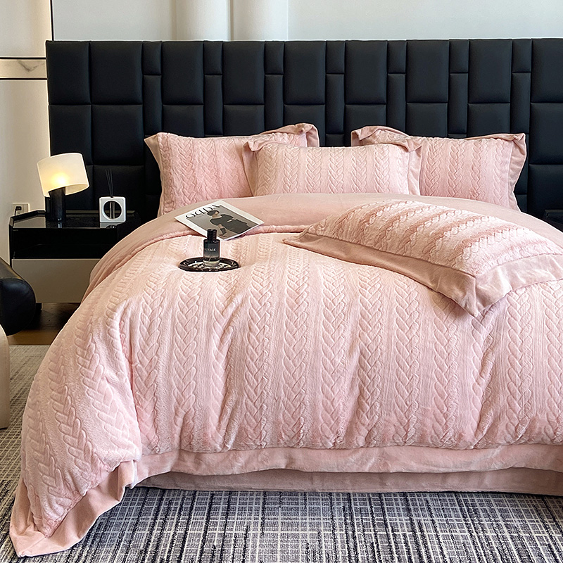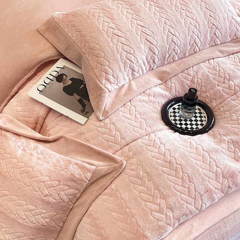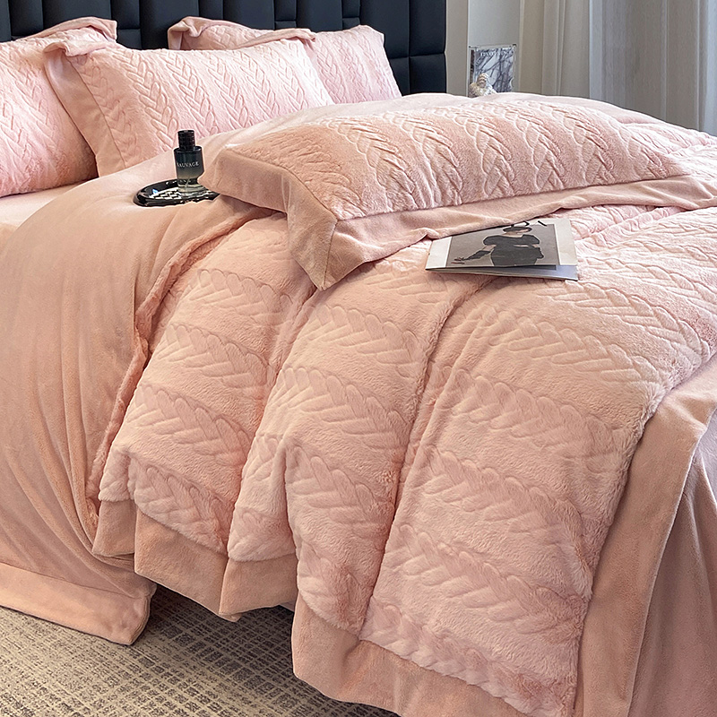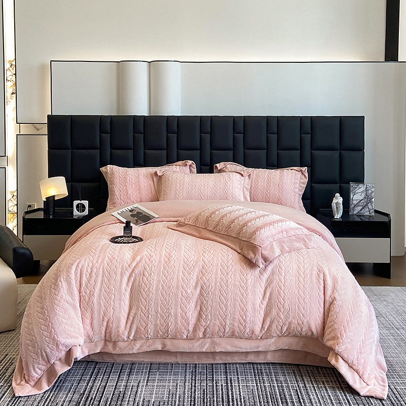 商品名称:若未家居 LOVEWE HOUSE 2025新款秋冬皮草套件A版500克丹麦貂B版250克全消光牛奶绒四件套-麦穗 麦穗-粉豆沙