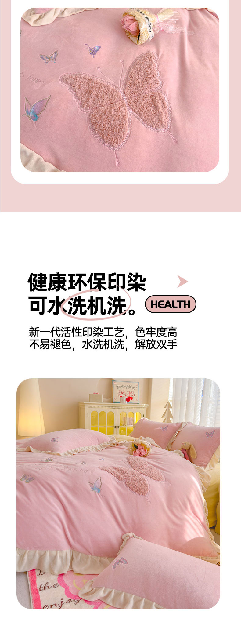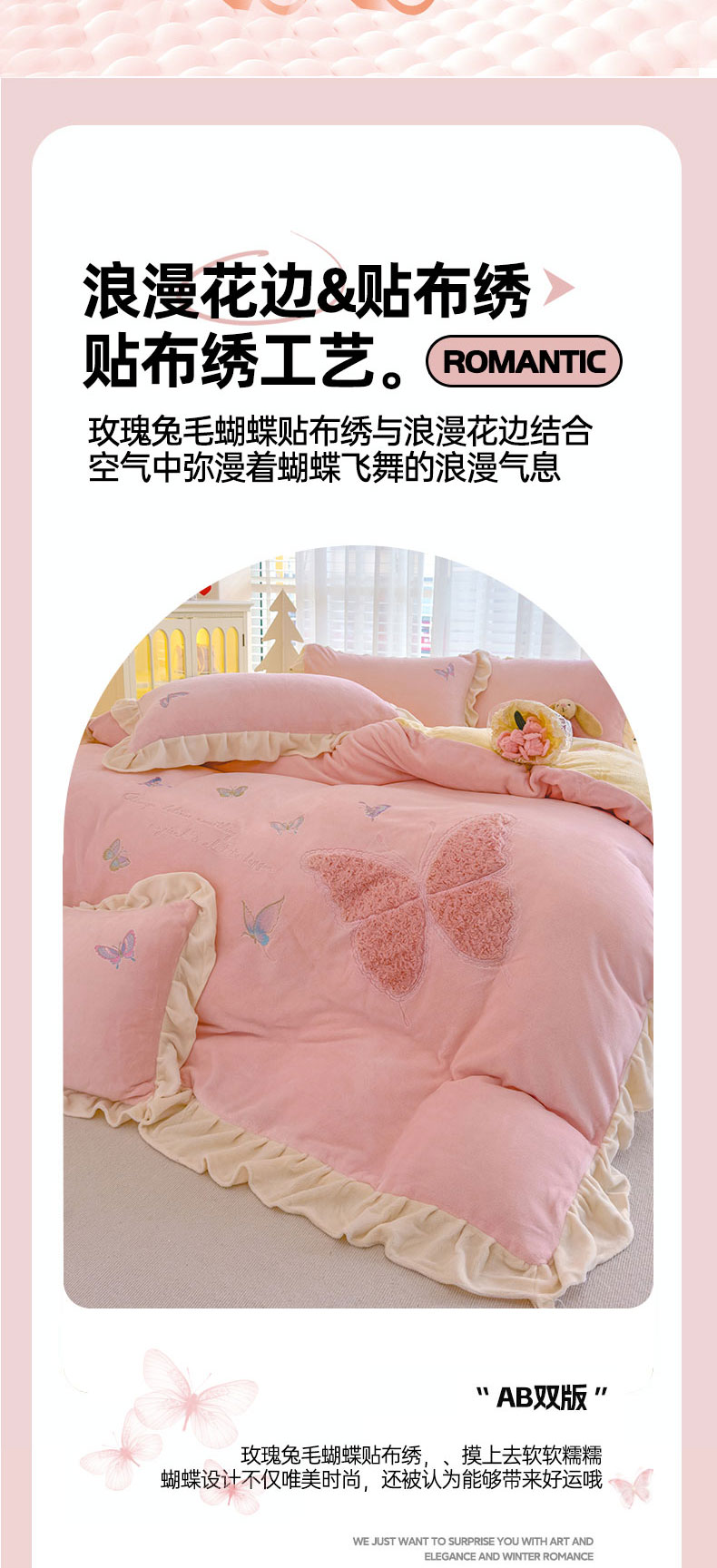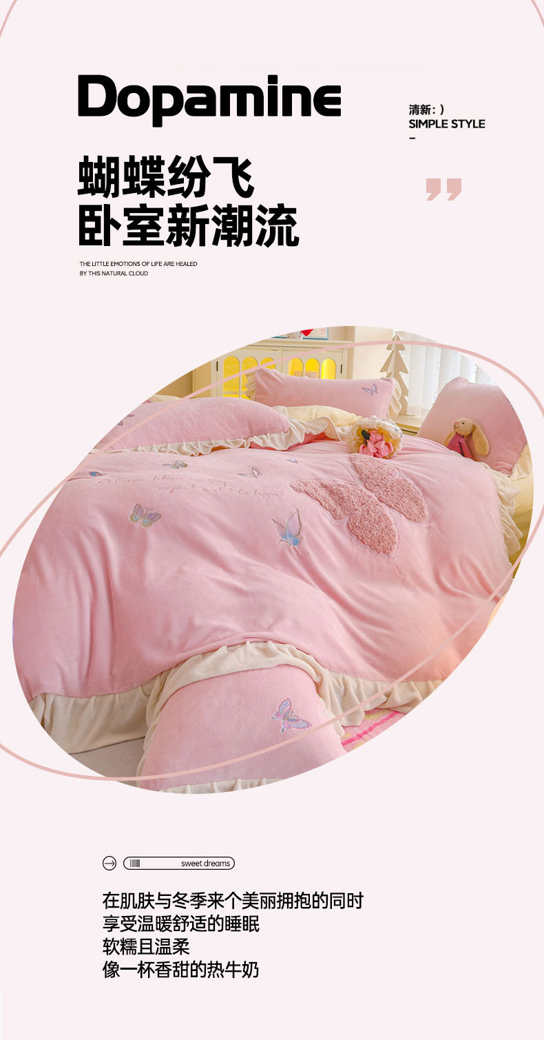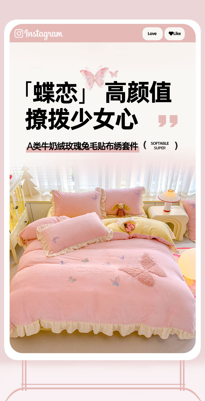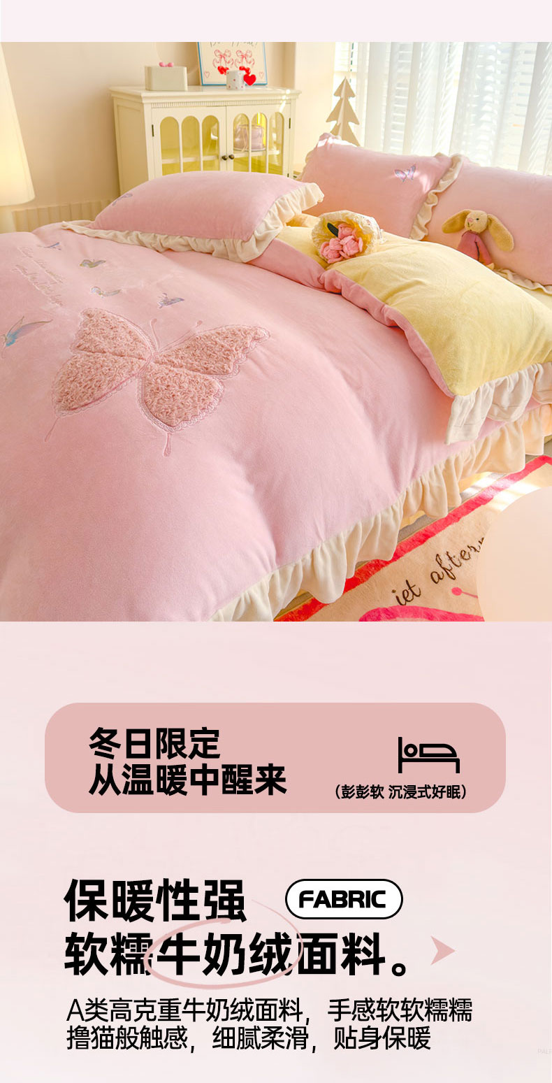 当前位置: 91家纺网 > 商品网购 > 床品套件 > 四件套 > 牛奶绒四件套 > 灰鲸 2025新款A类牛奶绒玫瑰兔毛贴布绣四件套 贴布绣蝶恋-樱花粉+奶黄