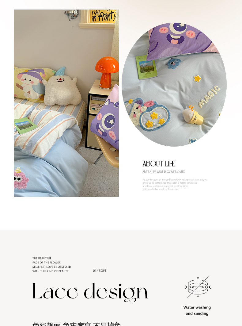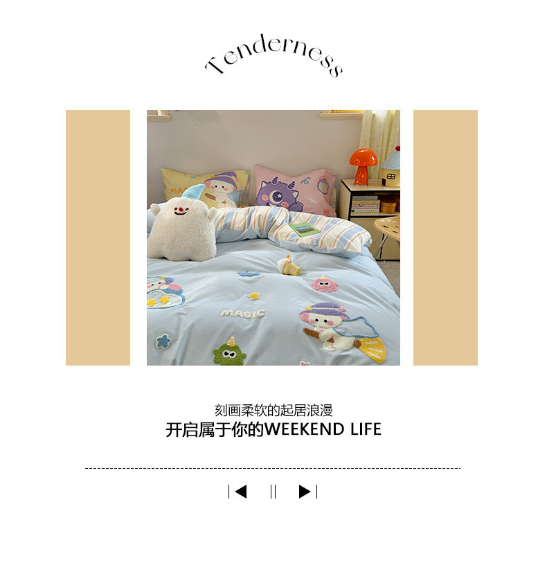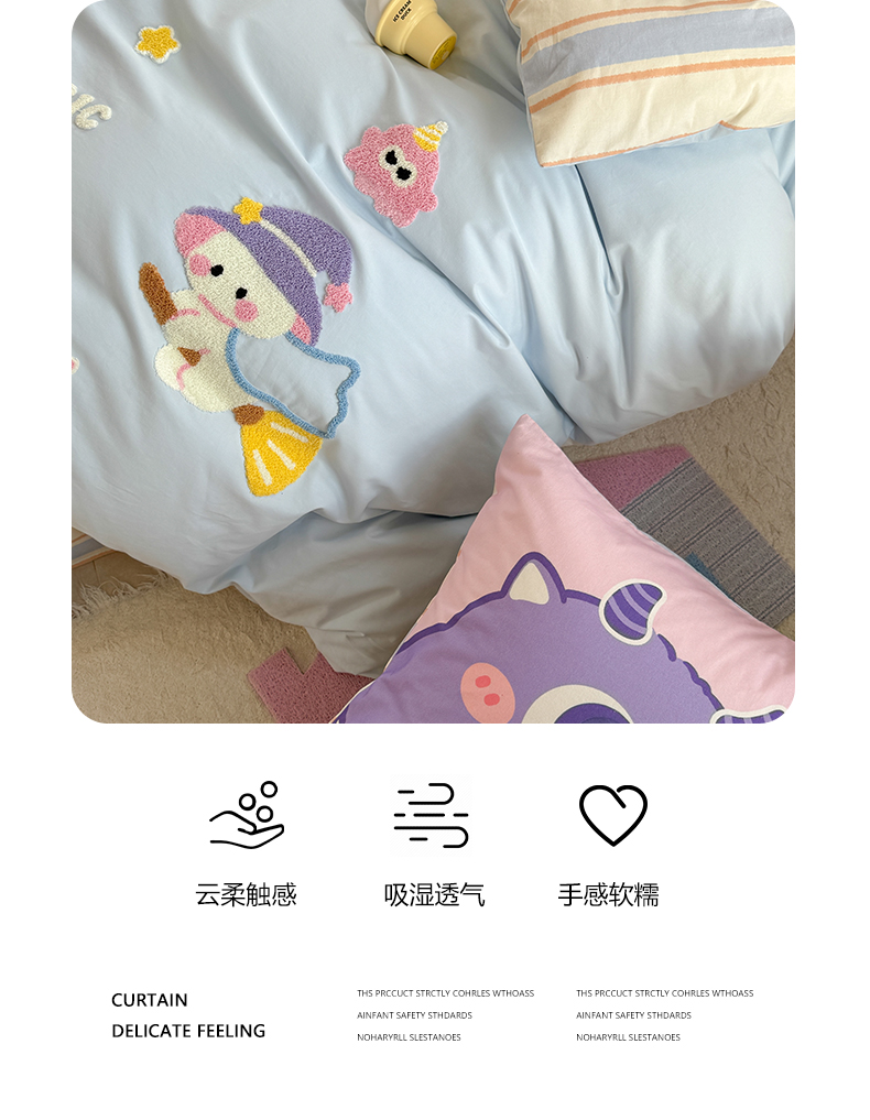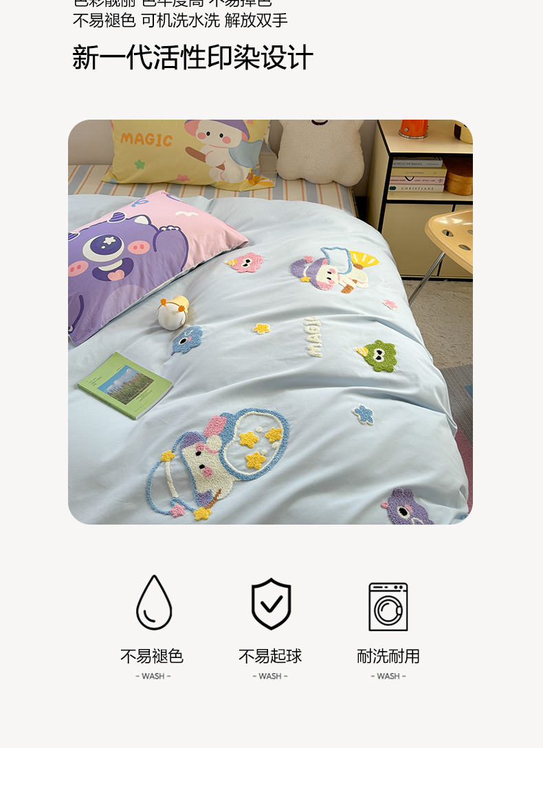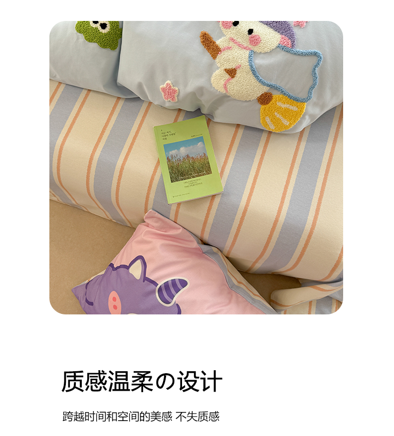 (总)眠屿家纺 2025新款全棉秋冬磨毛贴布绣四件套,爱心猫咪,蛋糕狗狗,可爱玩偶,热量100%