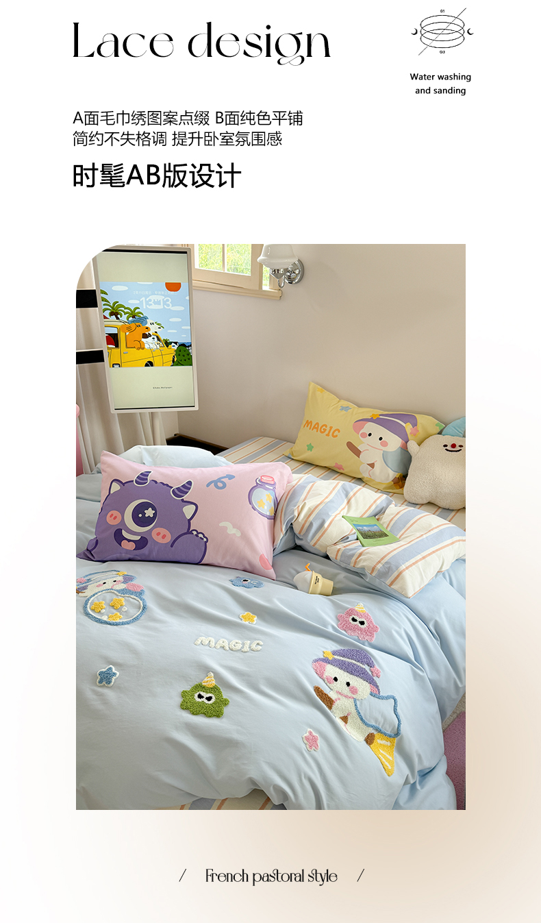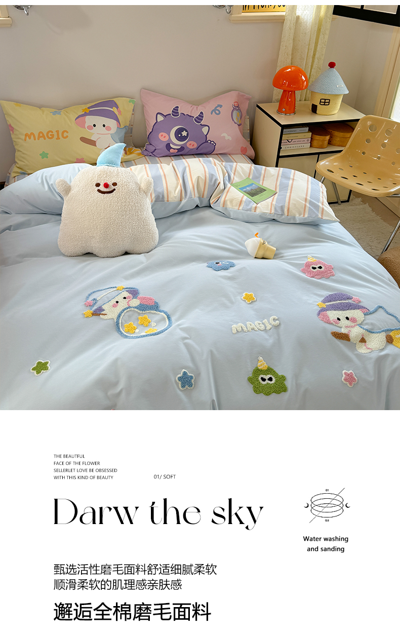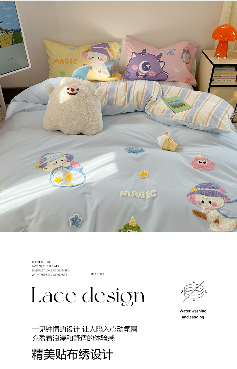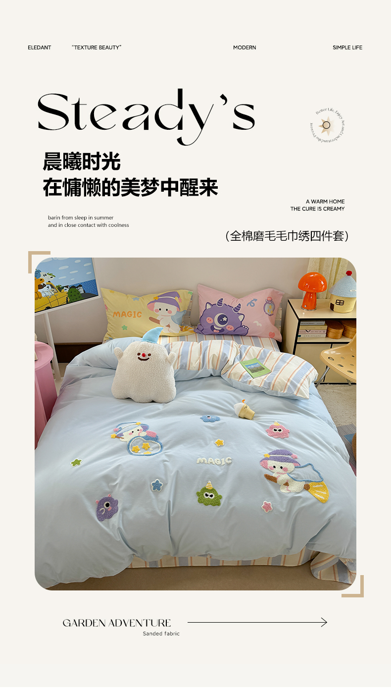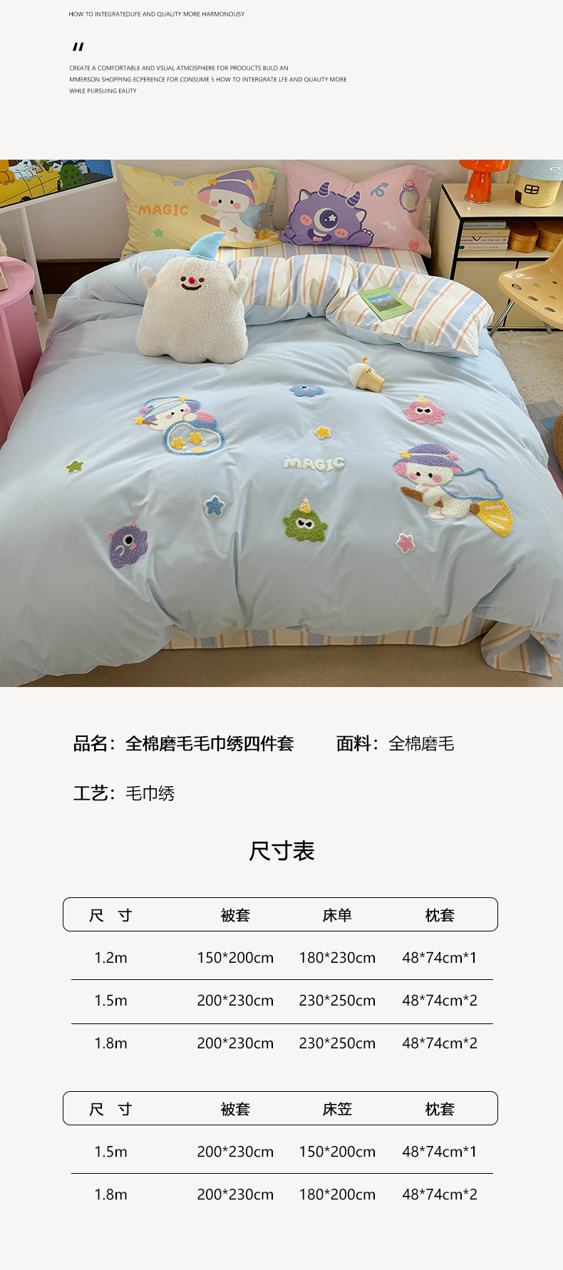 眠屿家纺 2025新款全棉磨毛毛巾绣四件套 星星魔法师