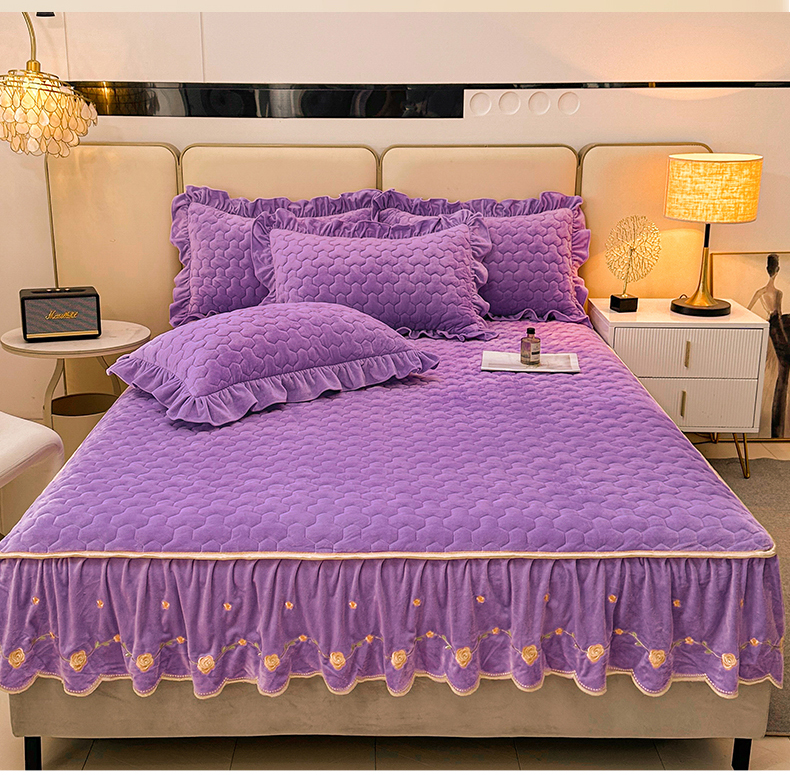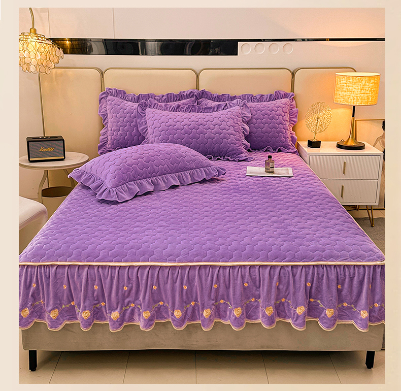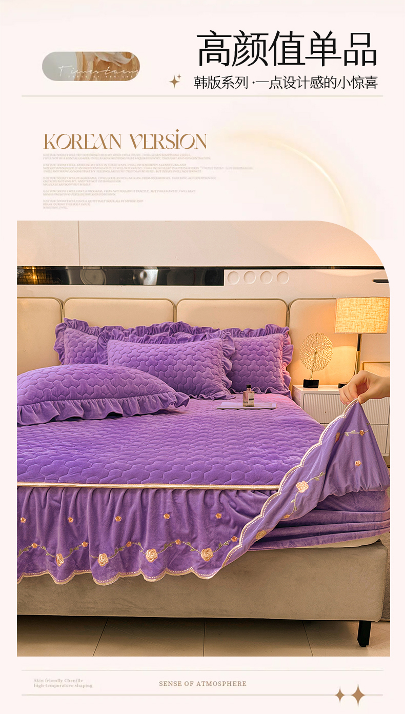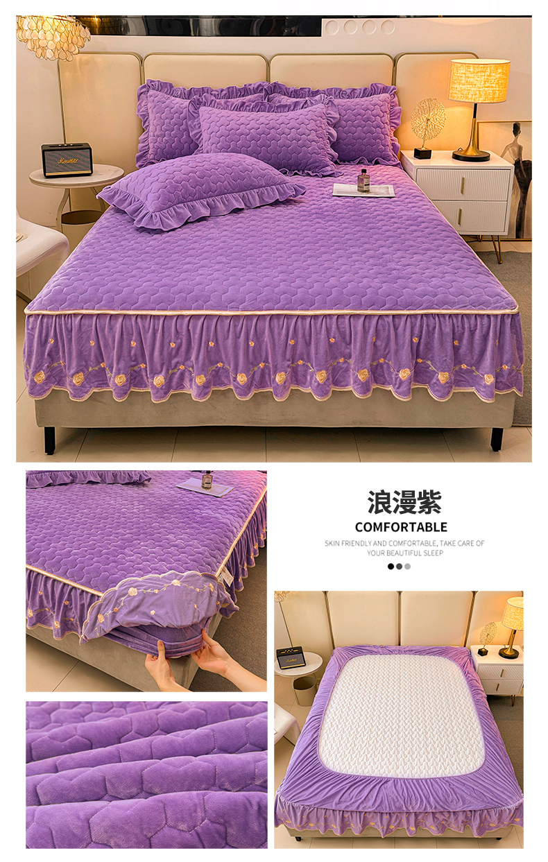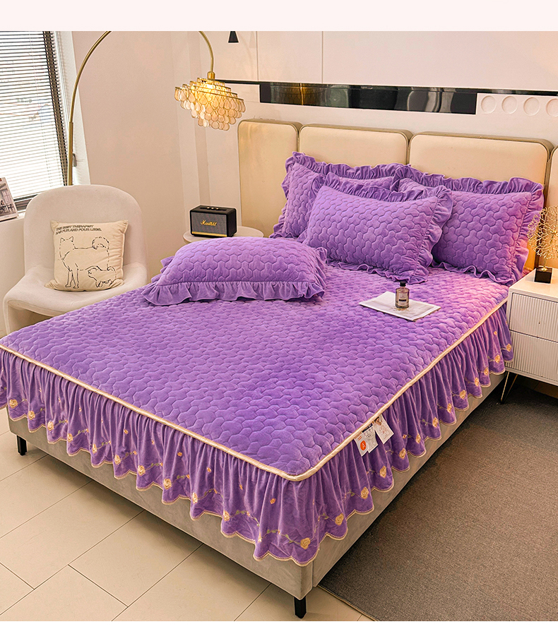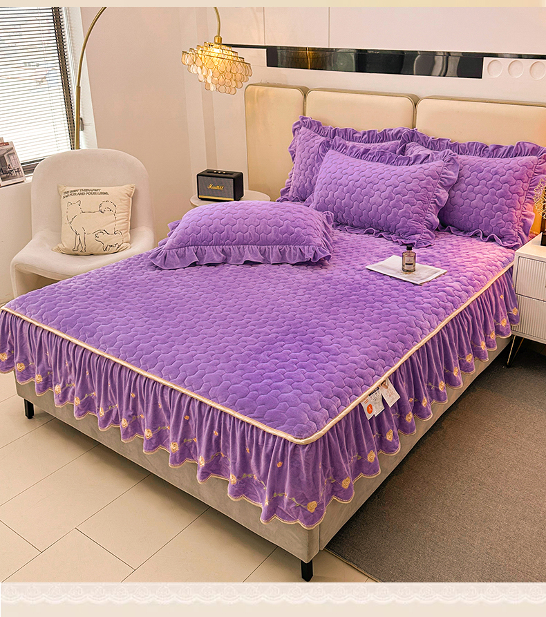• 91家纺网 家纺一手货源 找家纺 (总)恒爱家纺 2025新款牛奶绒贴布绣夹棉床裙四件套,豆沙红,浪漫紫,天空蓝,温馨粉,象牙白