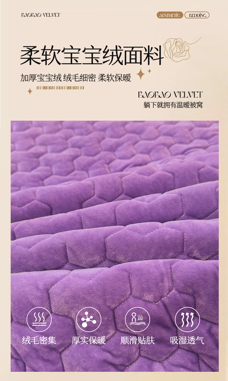 • 91家纺网 家纺一手货源 找家纺 恒爱家纺 2024新款宝宝绒霞姿月韵床笠 浪漫紫