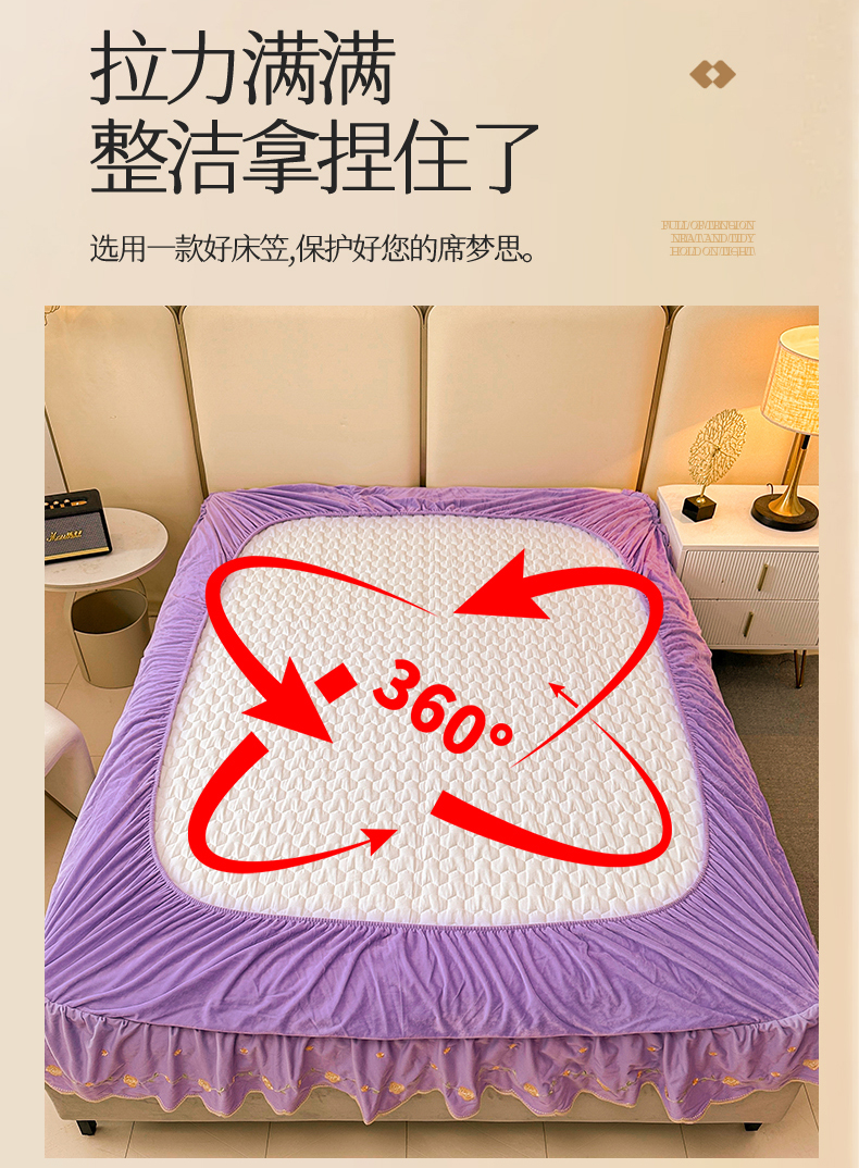 恒爱家纺 2024新款宝宝绒霞姿月韵床笠 浪漫紫