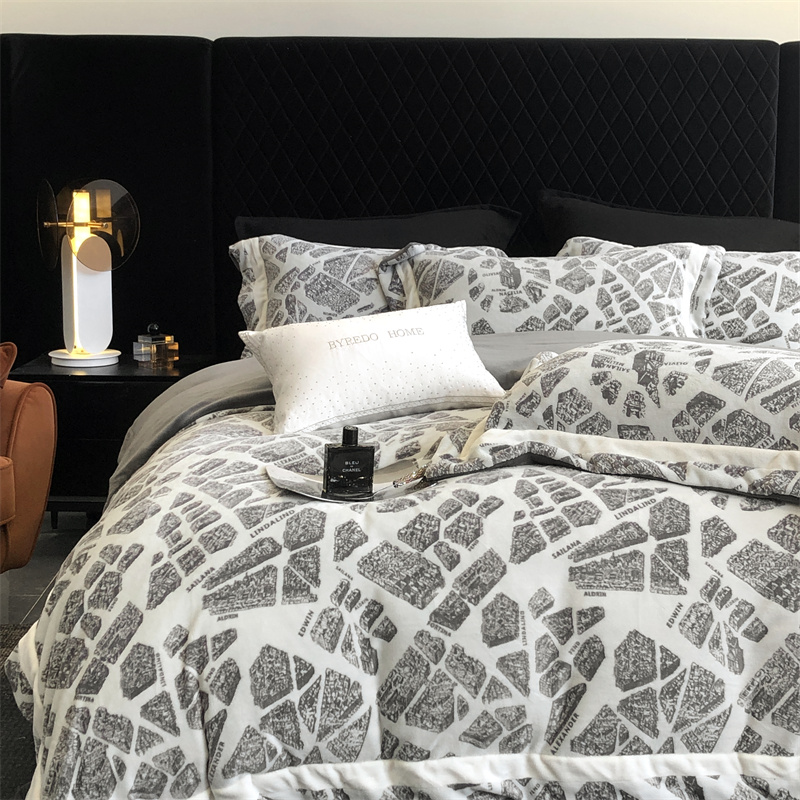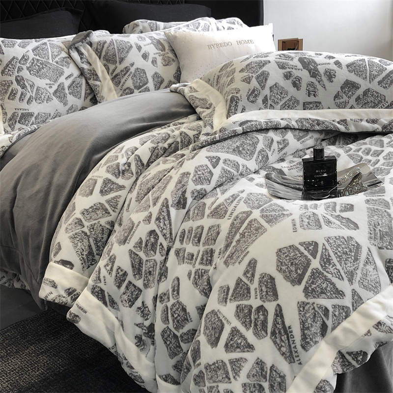 馨蕊家居 2024秋冬轻奢煦暖绒高精密刺绣绒寻密系列四件套 寻密-伦敦雾