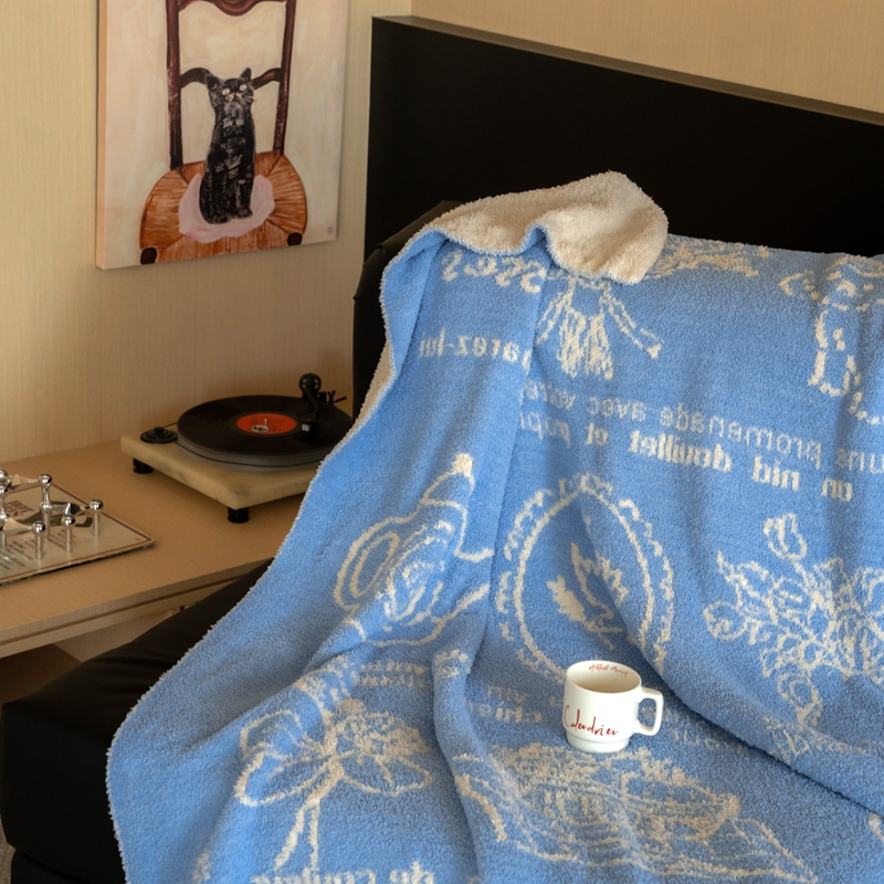 圆岛 2024新款多功能针织半边绒毛毯 下午茶