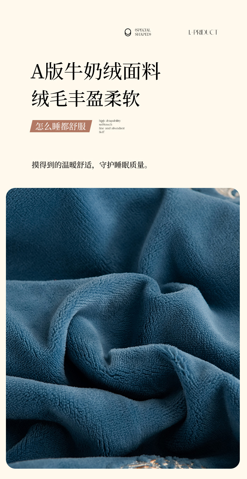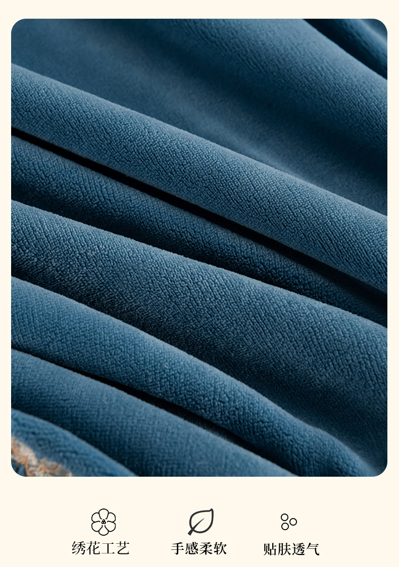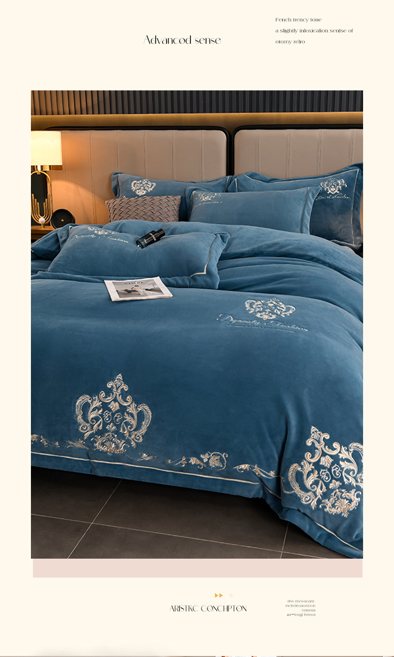 沐妍家纺 2024新款重工刺绣绣花纯色牛奶绒四件套皇冠-午夜蓝,皇冠-午夜蓝