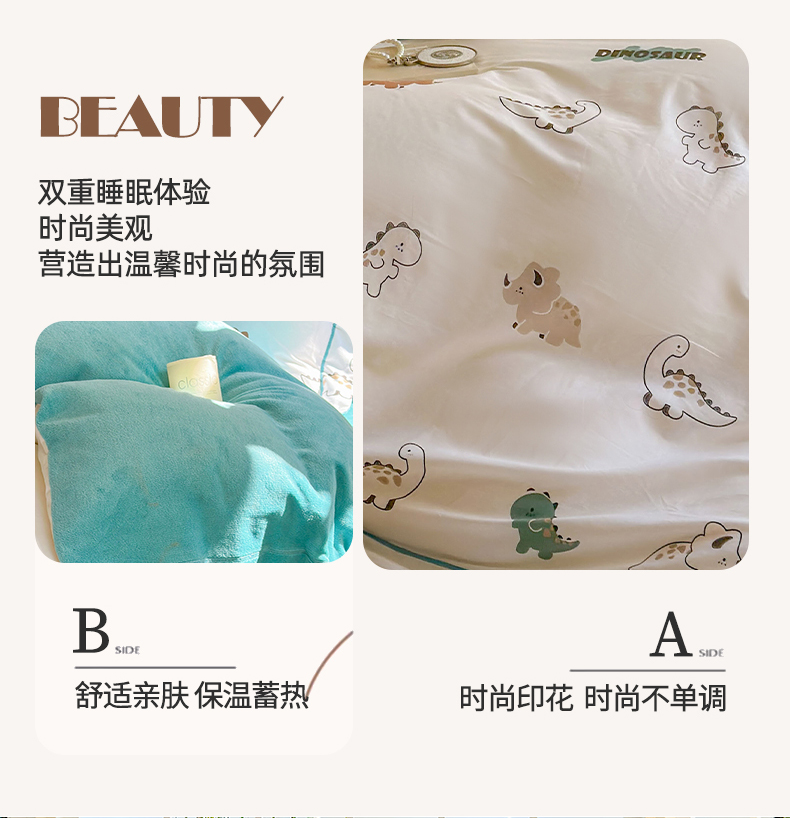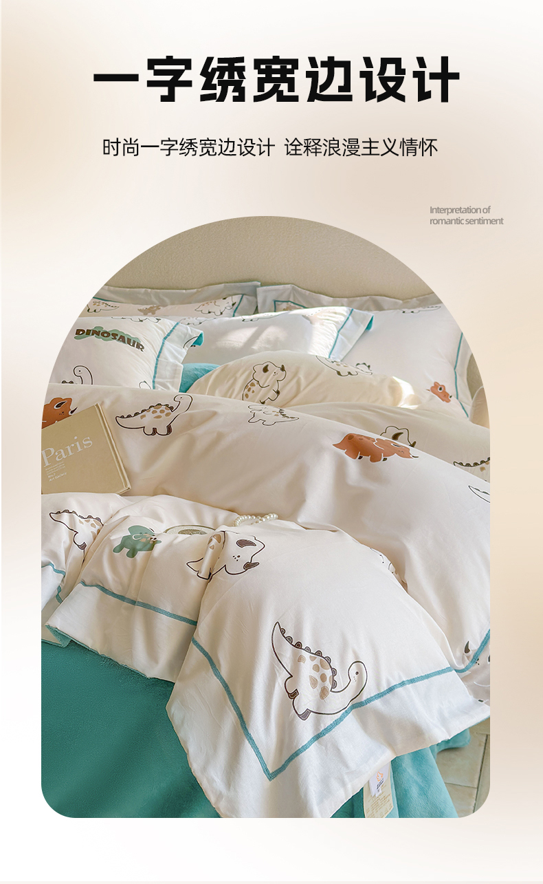 商品名称:7V 2024新款单件被套A纯棉B牛奶绒轻奢大宽边一字绣A类133*76全棉喷气宽幅长绒棉高克重全工艺牛奶绒 侏罗纪