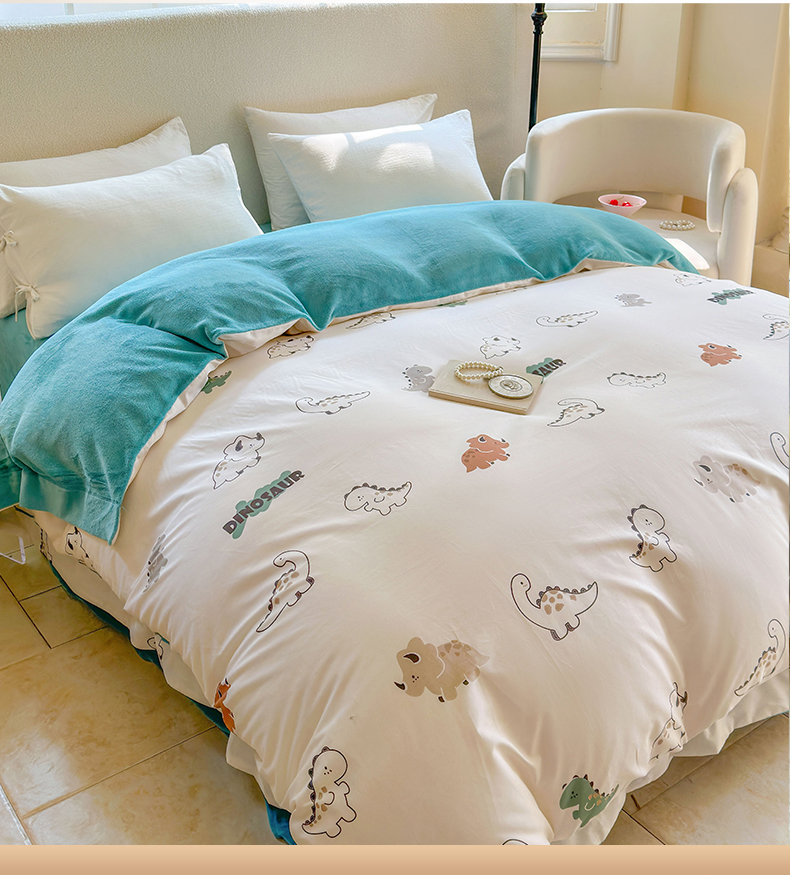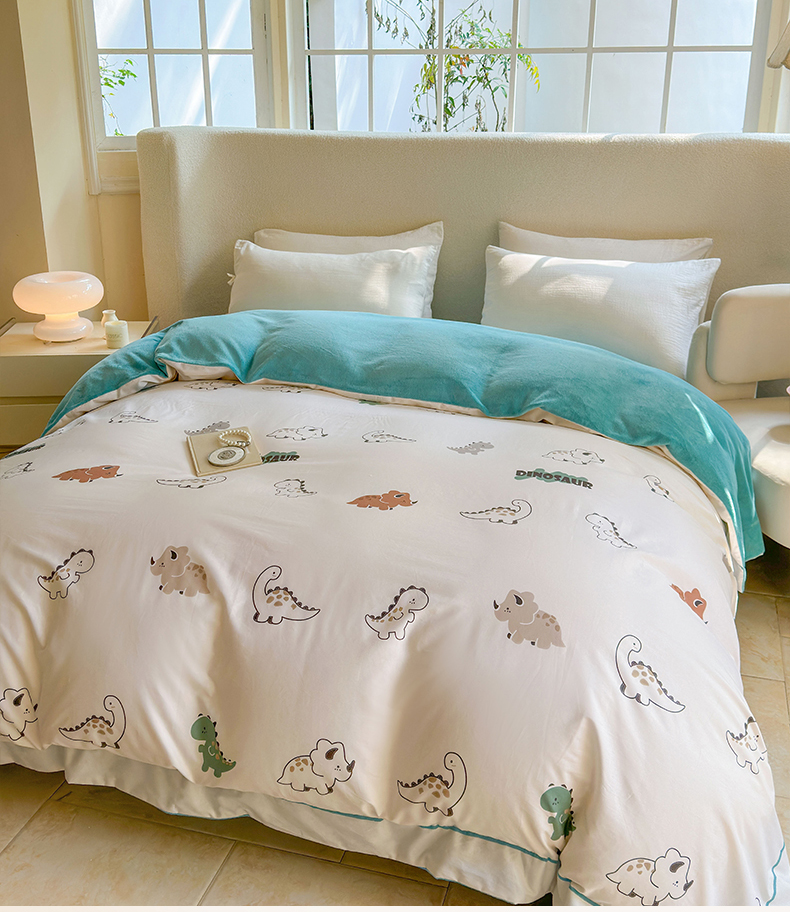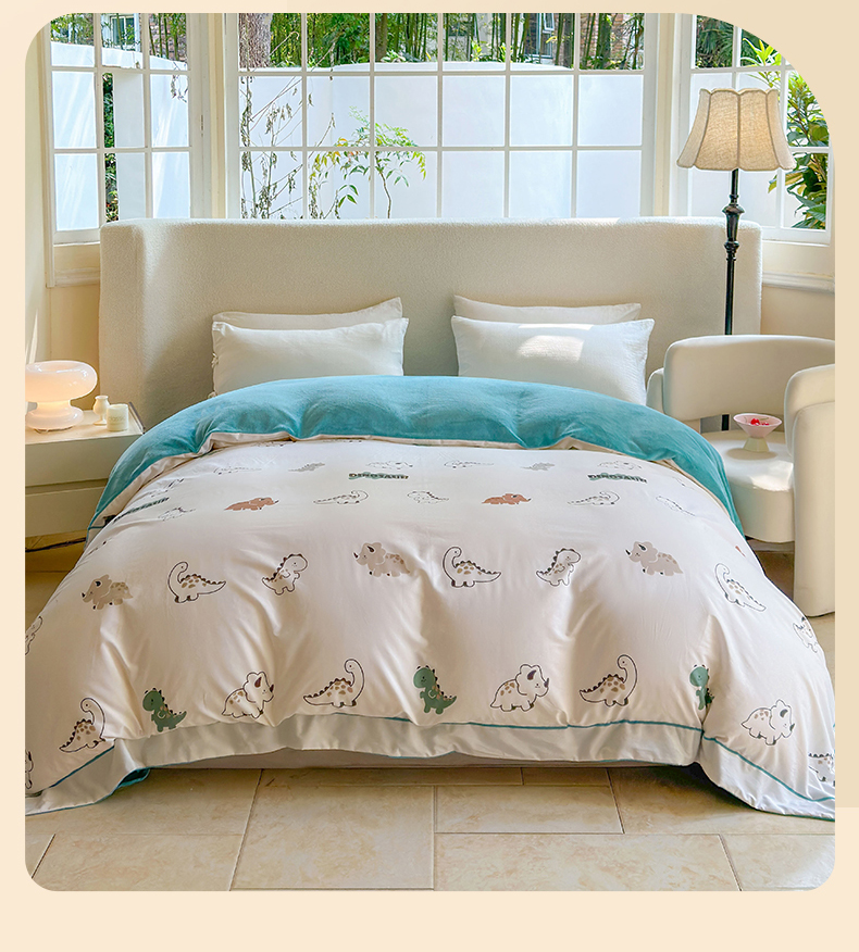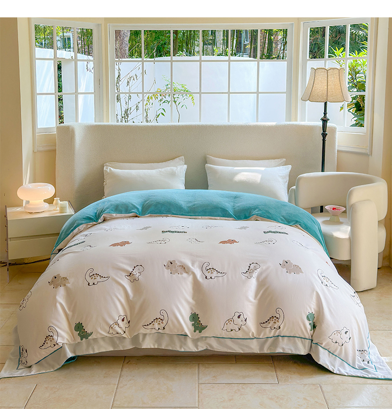 7V 2024新款单件被套A纯棉B牛奶绒轻奢大宽边一字绣A类133*76全棉喷气宽幅长绒棉高克重全工艺牛奶绒 侏罗纪