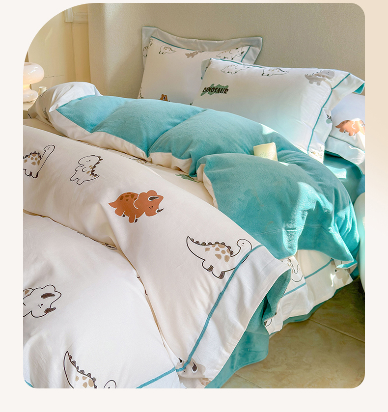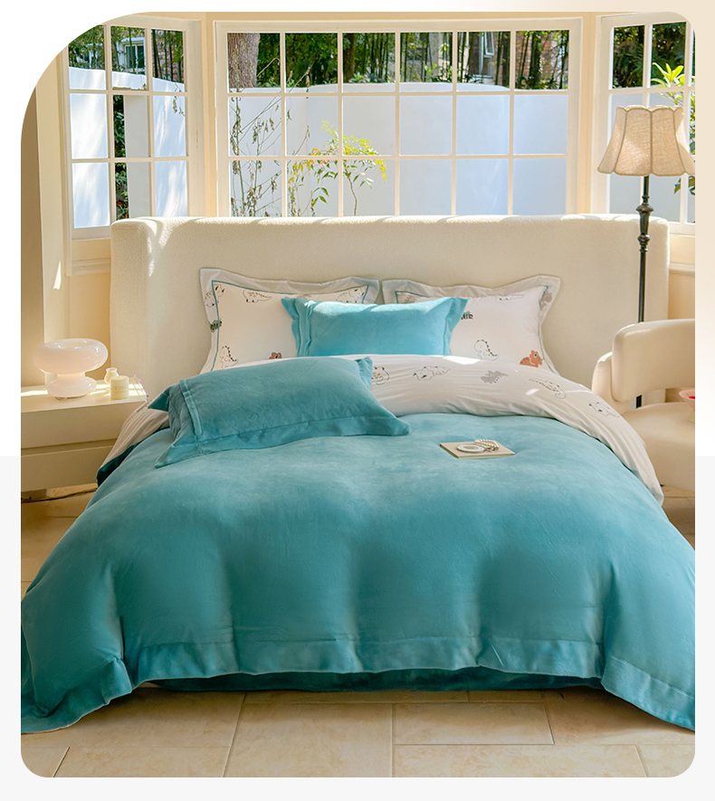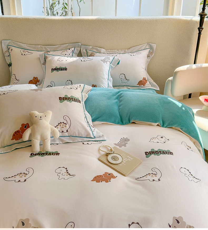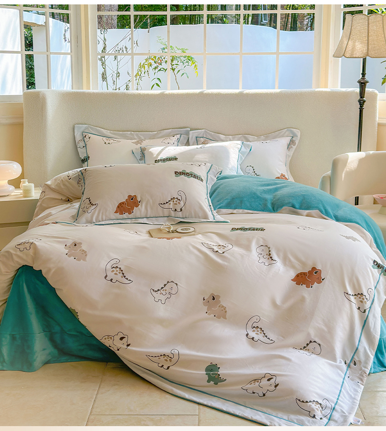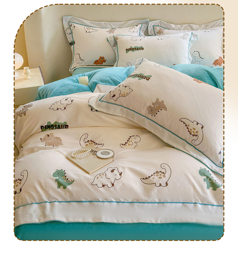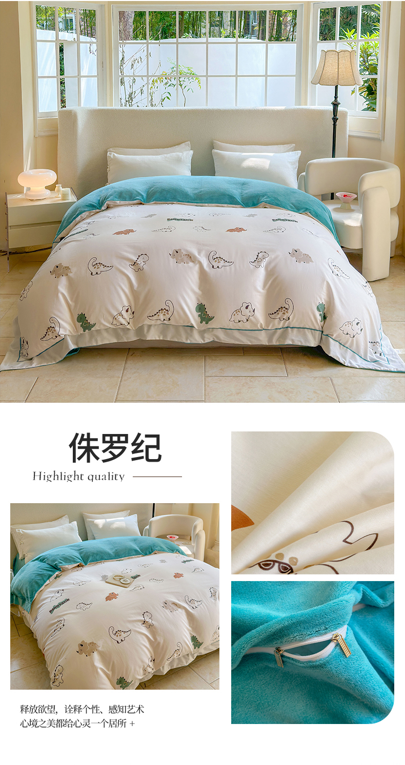床上用品 > 被套 > 7V 2024新款单件被套A纯棉B牛奶绒轻奢大宽边一字绣A类133*76全棉喷气宽幅长绒棉高克重全工艺牛奶绒 侏罗纪