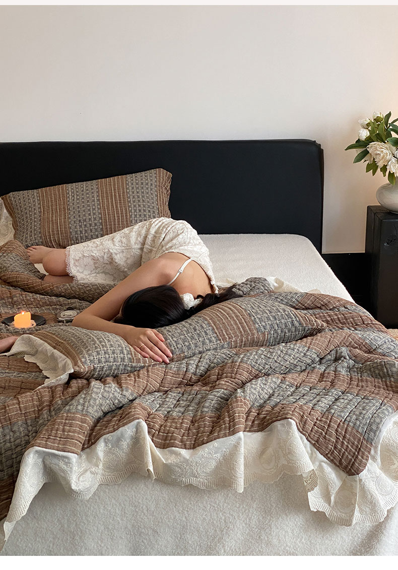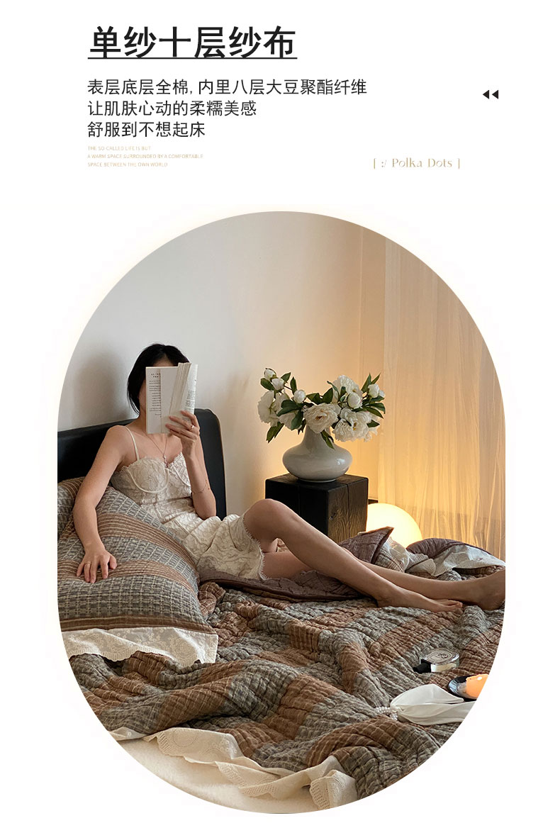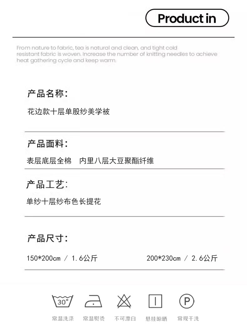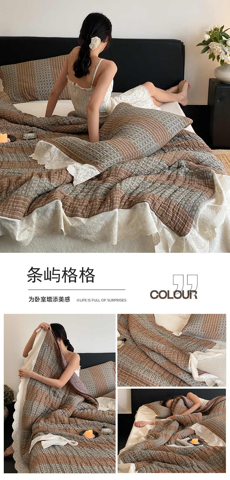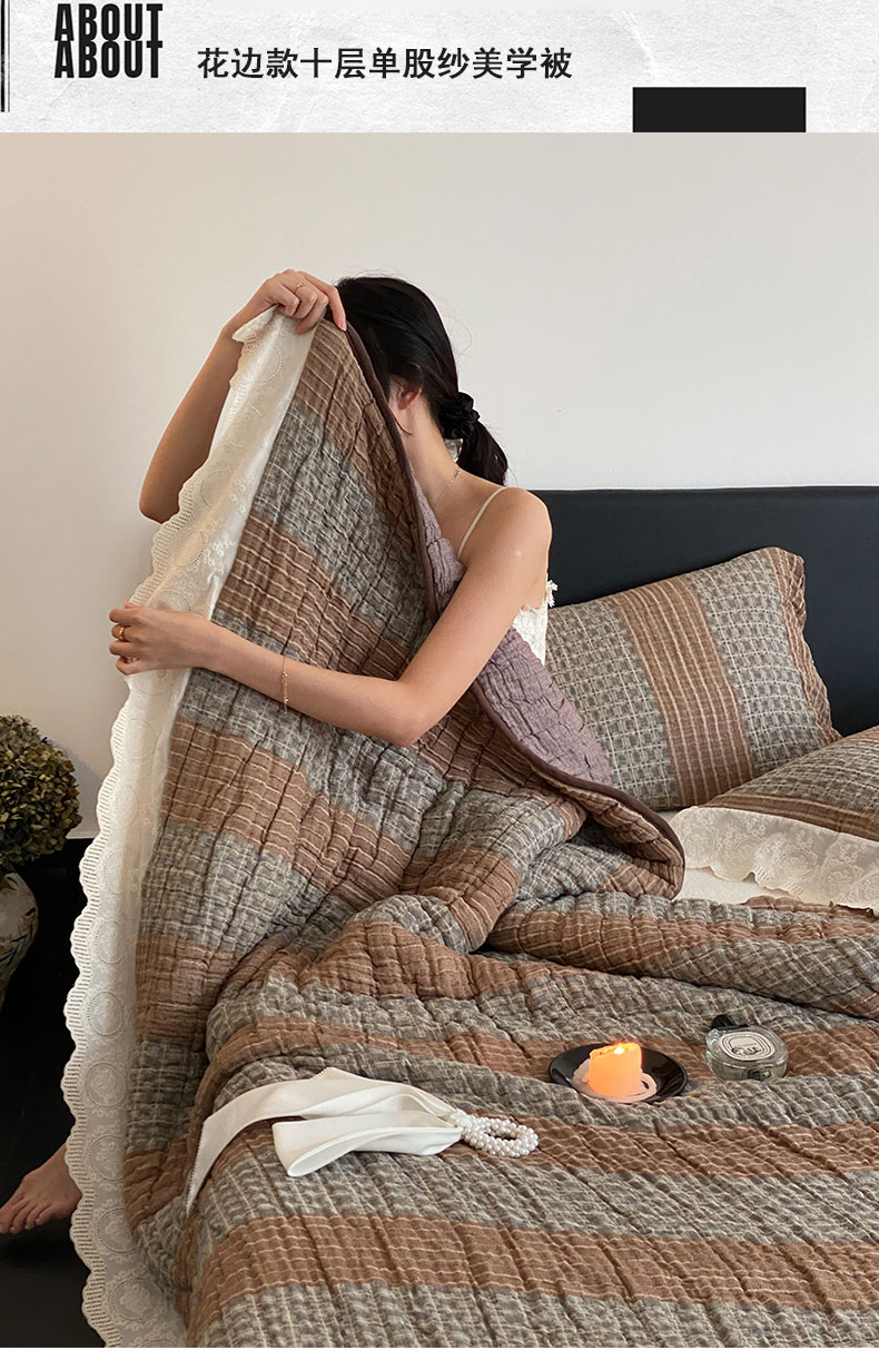 商品名称:麻依 2024新款十层单股纱美学被花边款纱布秋冬被子 条屿格格