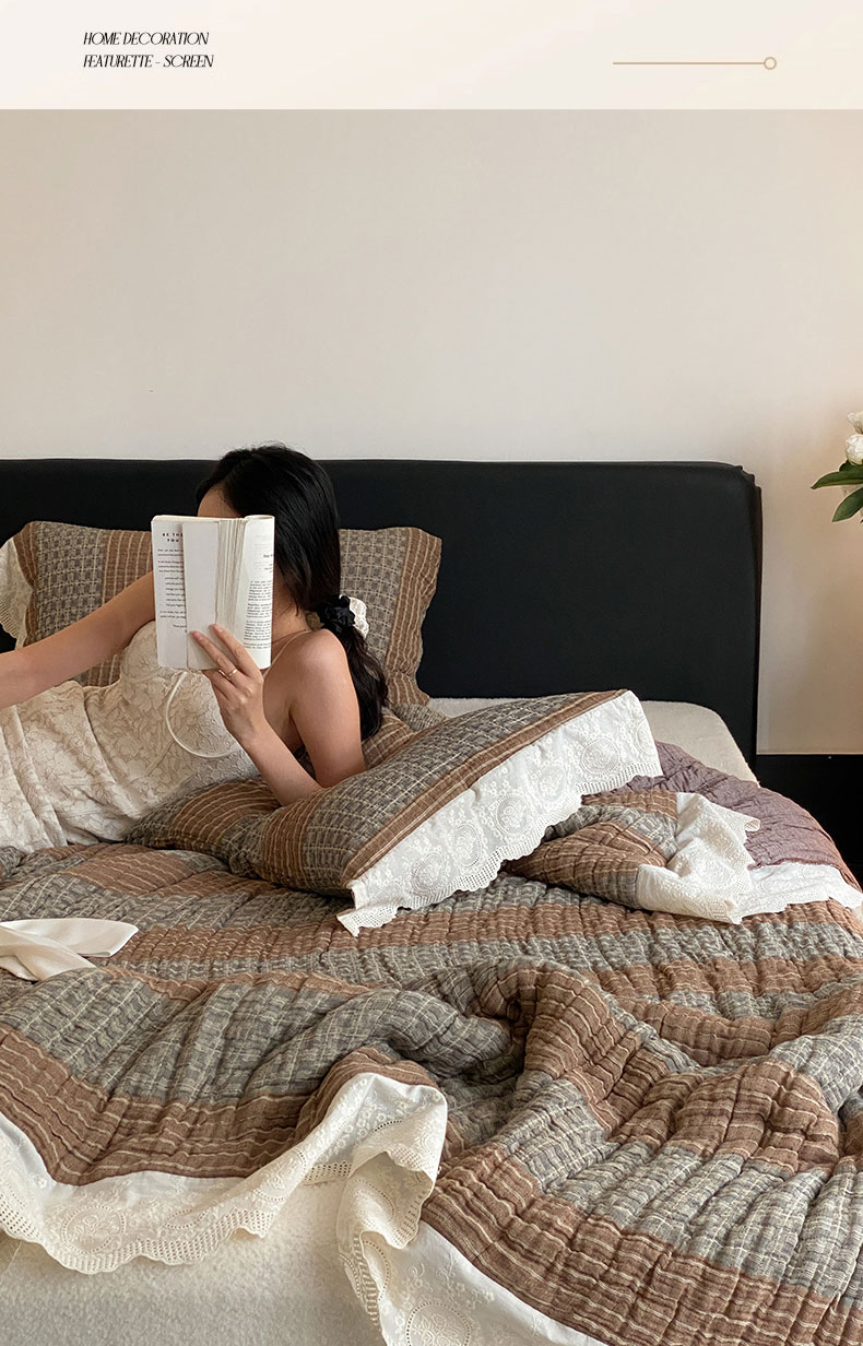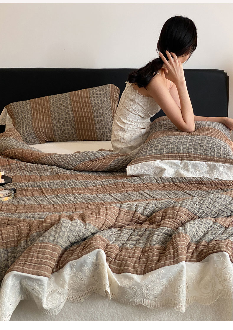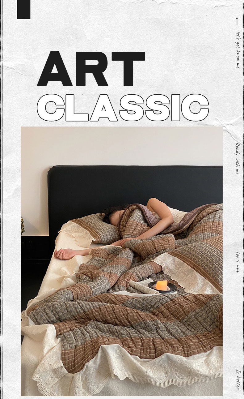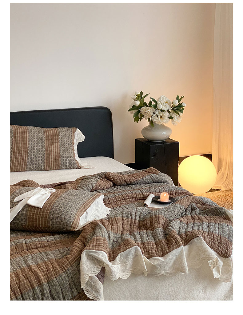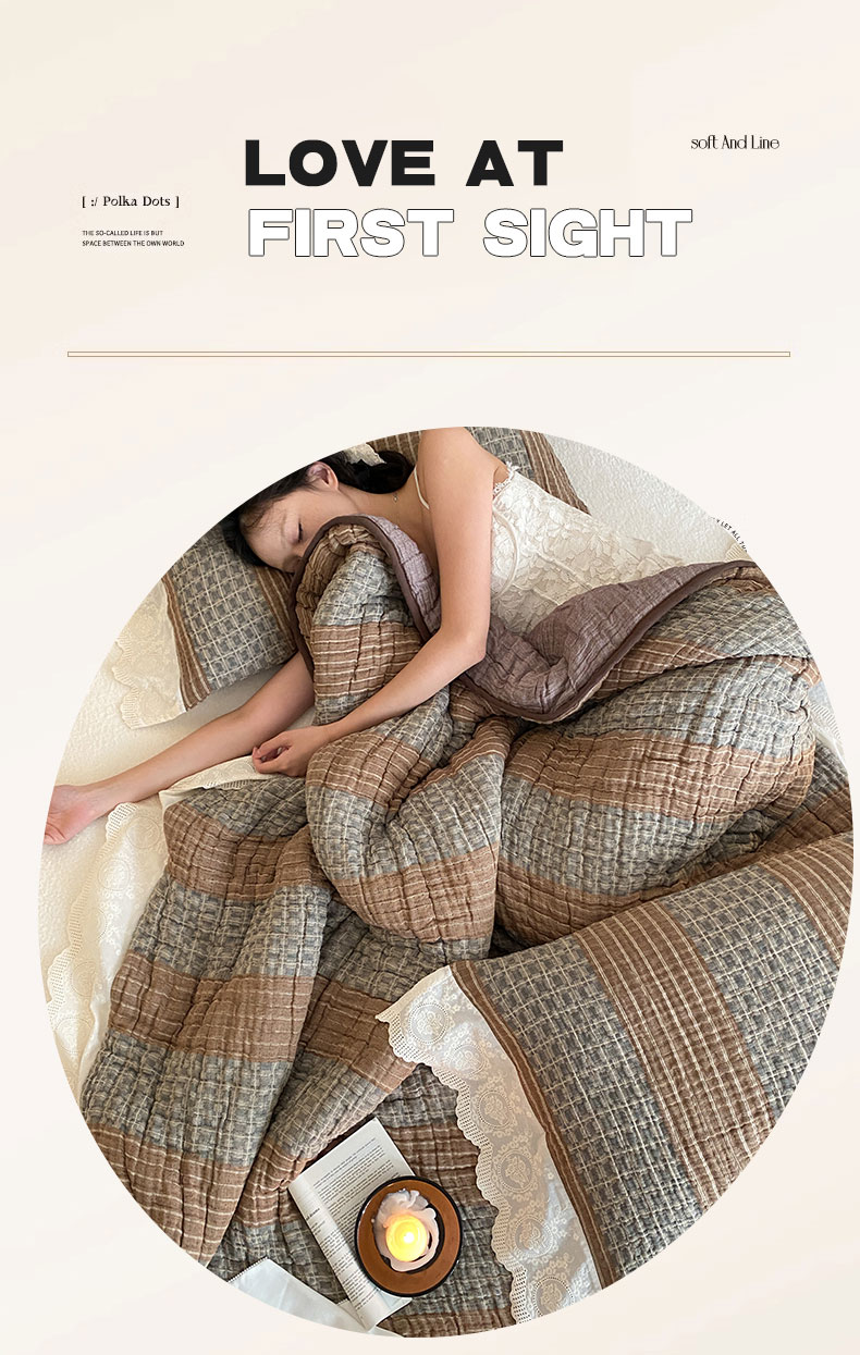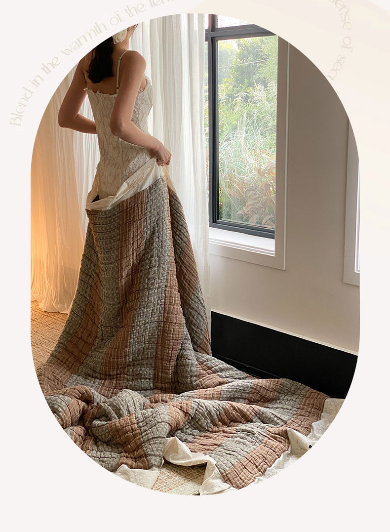 商品名称:麻依 2024新款十层单股纱美学被花边款纱布秋冬被子 条屿格格