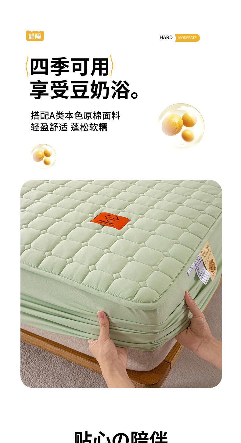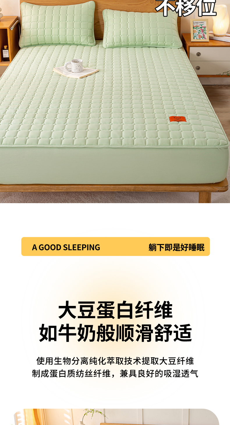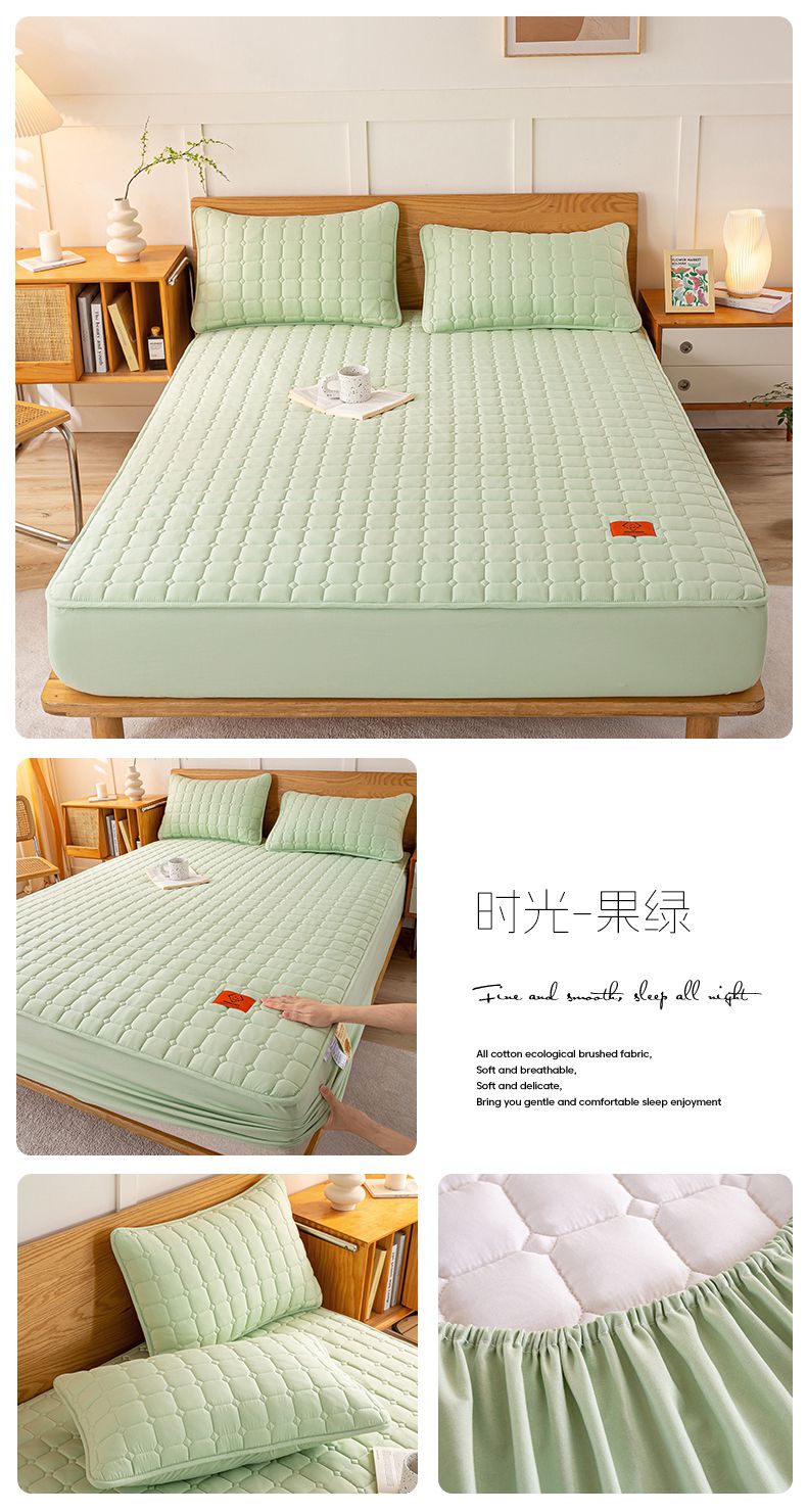 商品名称:悦织湾家纺 2025新款A类本色原棉大豆床笠 时光-果绿