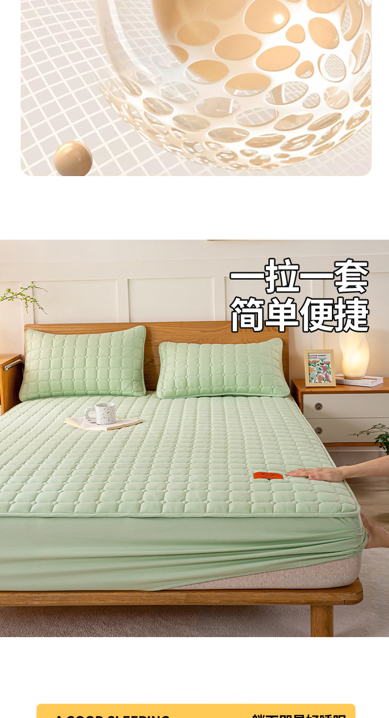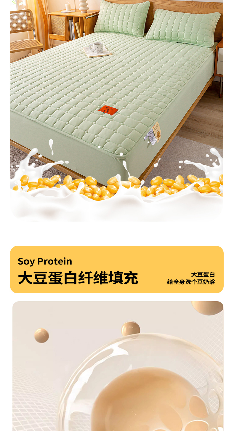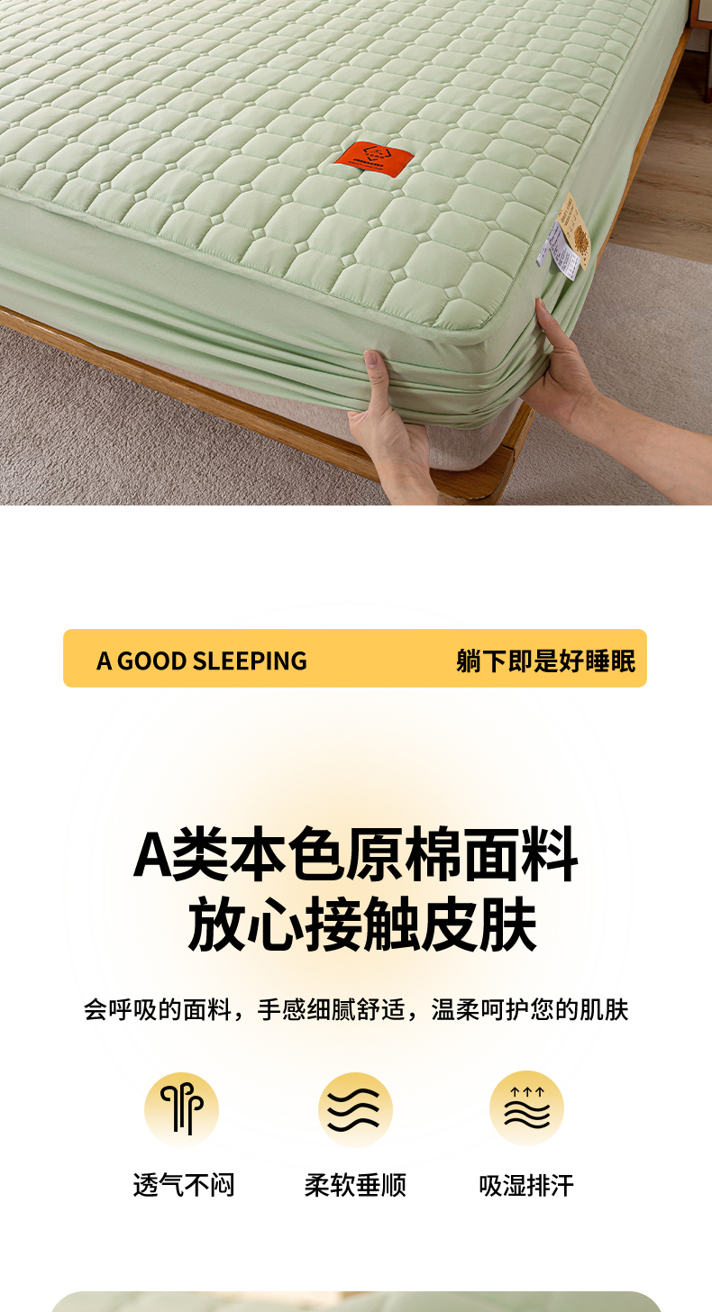 商品名称:悦织湾家纺 2025新款A类本色原棉大豆床笠 时光-果绿