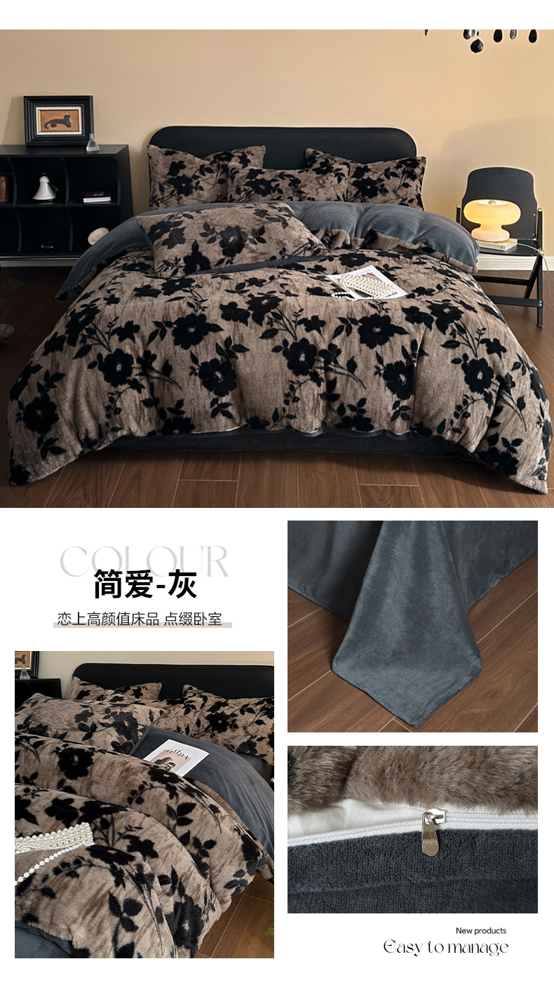 商品名称:丝印良品 2024秋冬新款丹麦兔毛绒牛奶绒四件套简爱-灰