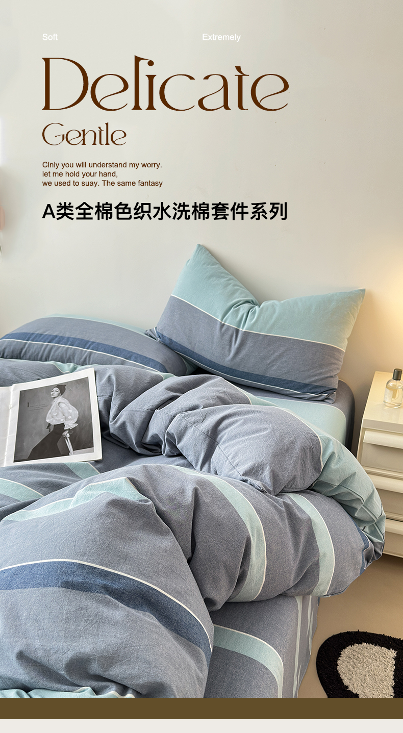 当前位置: 91家纺网 > 商品网购 > 床品套件 > 四件套 > 水洗棉四件套 > 清雅福 2024新款全棉A类水洗棉四件套单被套 米亚