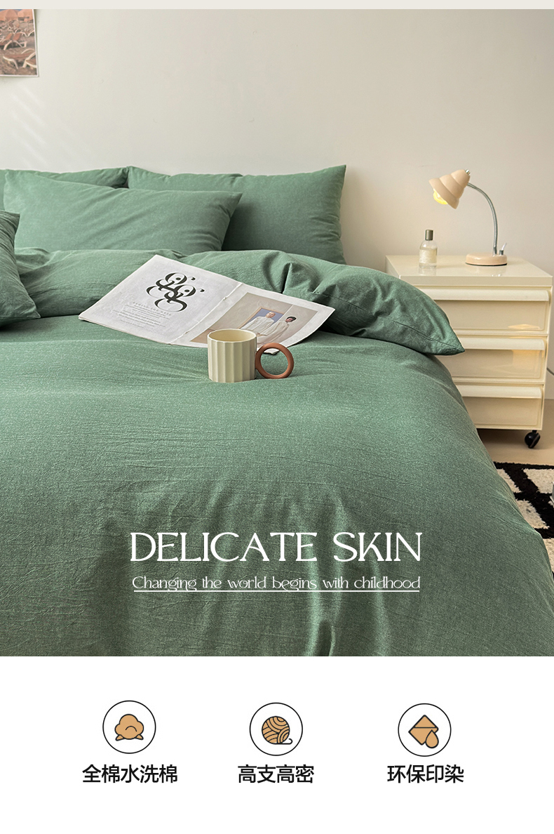 商品名称:清雅福 2024新款全棉A类水洗棉单品被套 豆绿