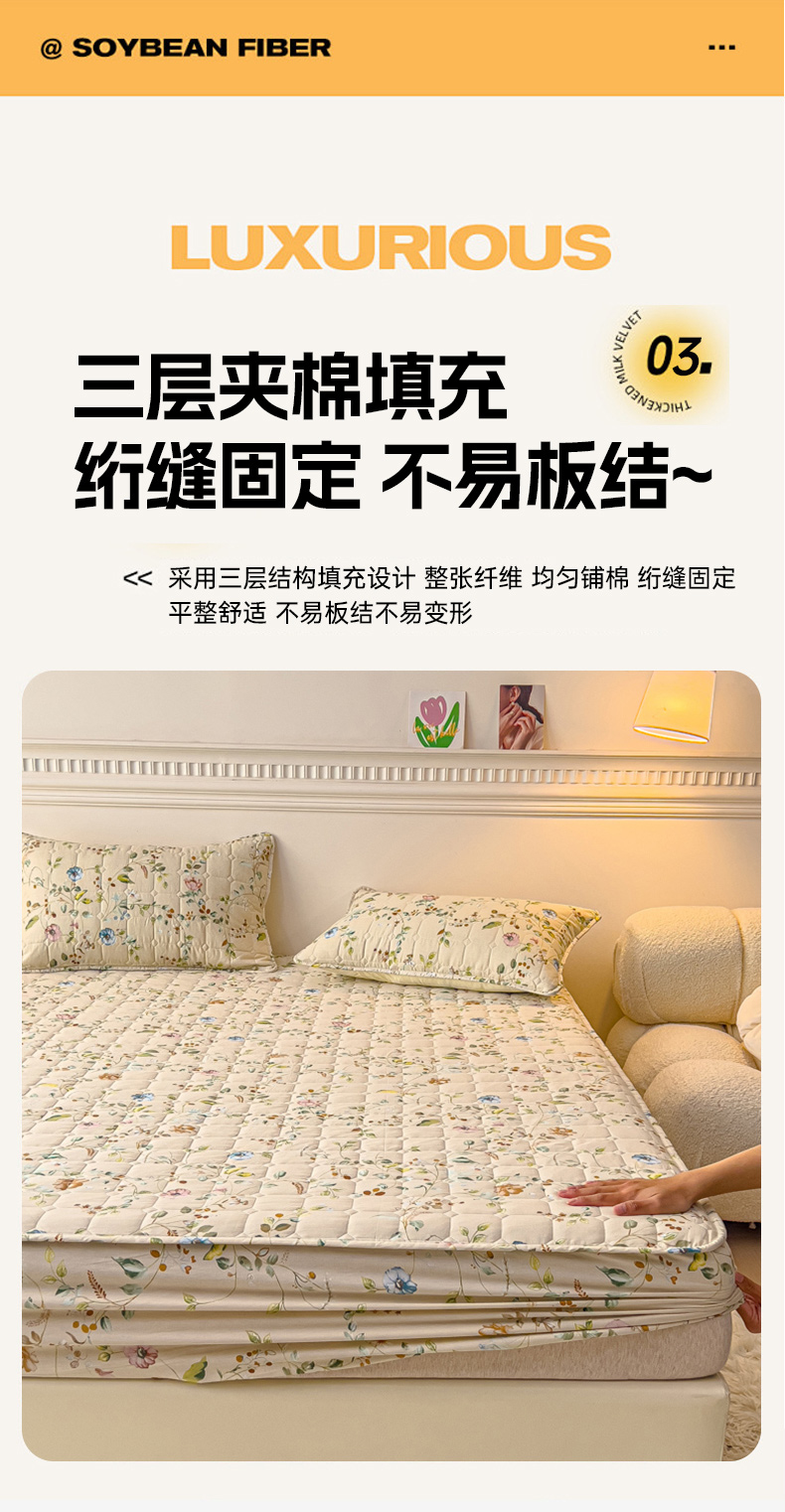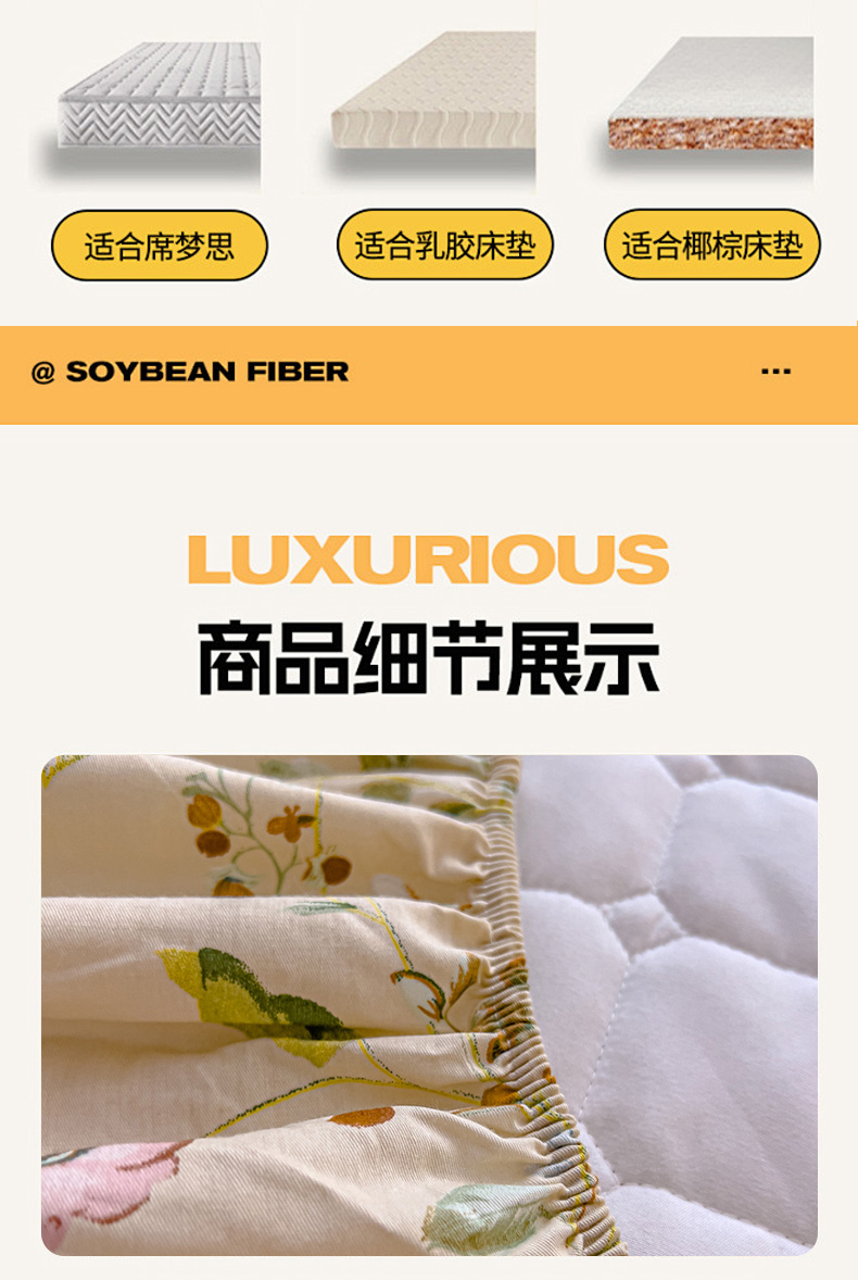 • 91家纺网 家纺一手货源 找家纺 寝居阁 2024新款13372全棉纯棉大豆纤维夹棉床笠 花舞悠然