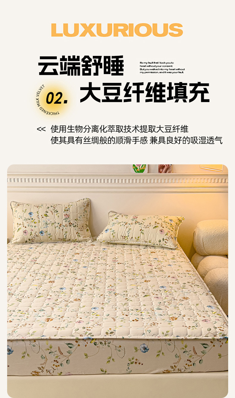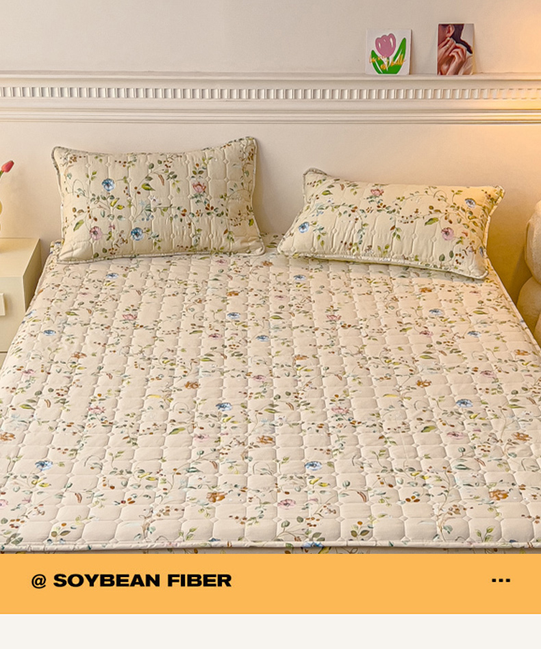 寝居阁 2024新款13372全棉纯棉大豆纤维夹棉床笠 忆江南,忆江南