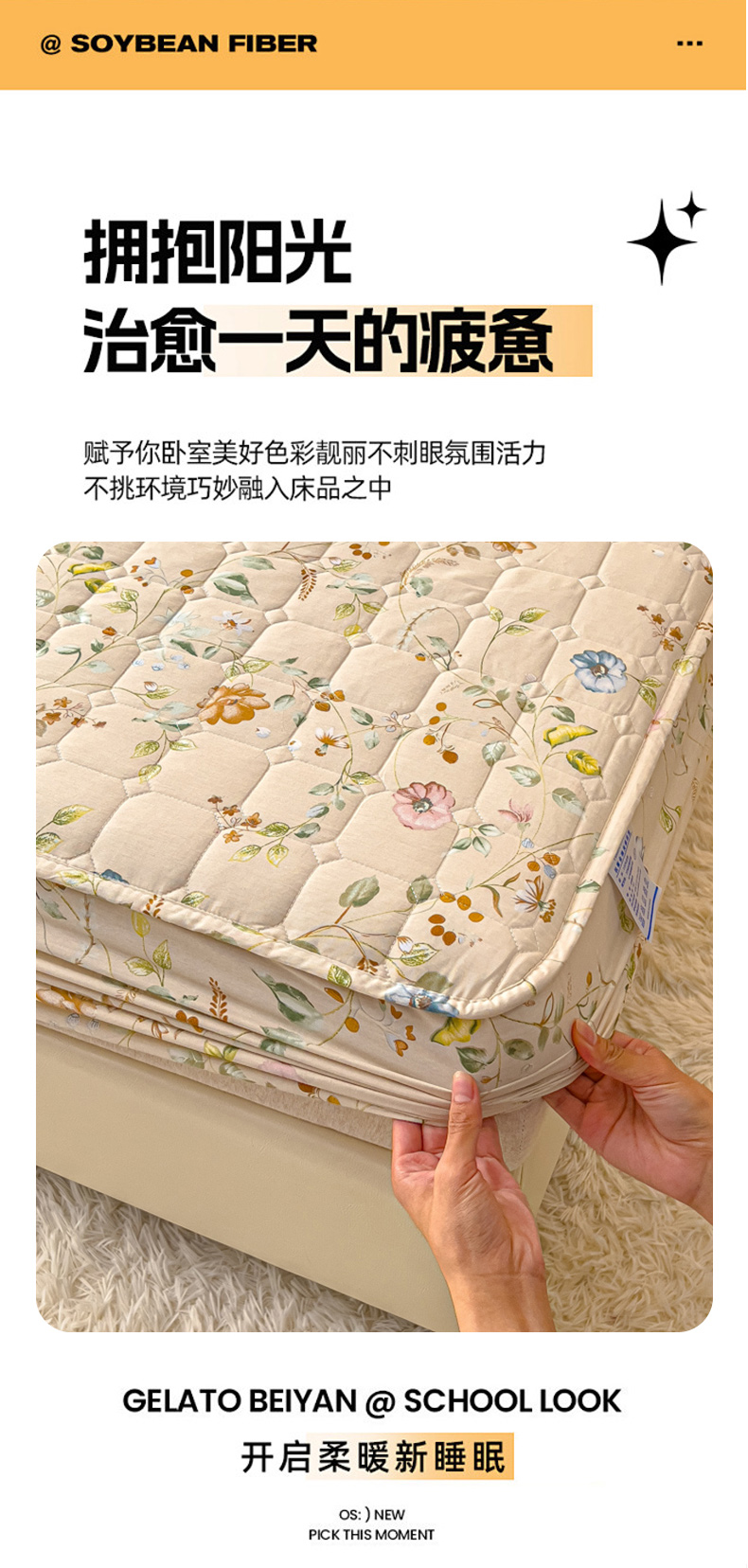 寝居阁 2024新款13372全棉纯棉大豆纤维夹棉床笠 花舞悠然