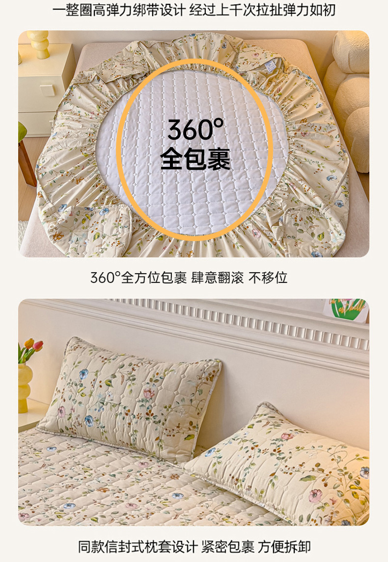 • 91家纺网 家纺一手货源 找家纺 寝居阁 2024新款13372全棉纯棉大豆纤维夹棉床笠 茜茜公主,茜茜公主