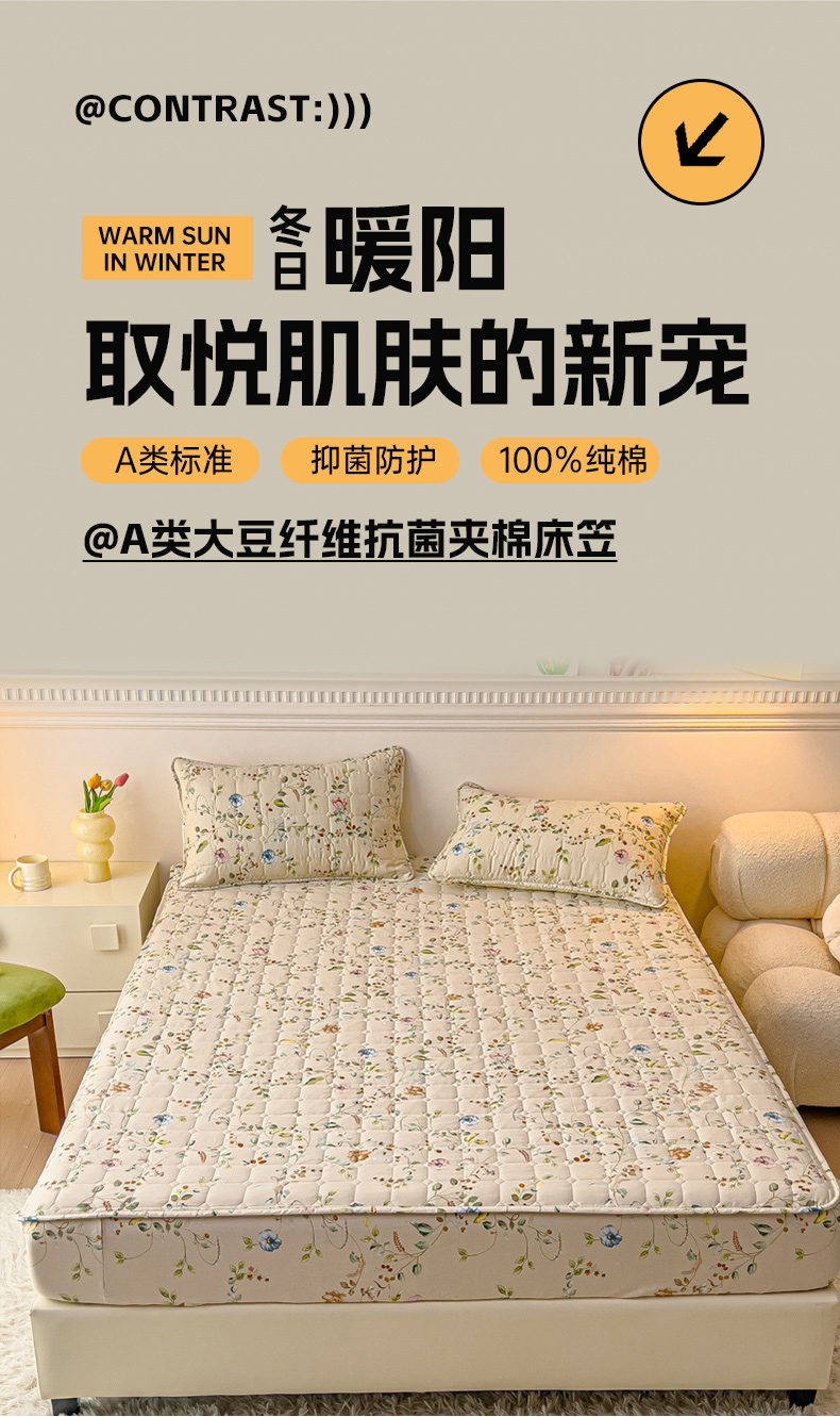 寝居阁 2024新款13372全棉纯棉大豆纤维夹棉床笠 茜茜公主,茜茜公主