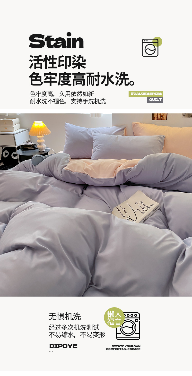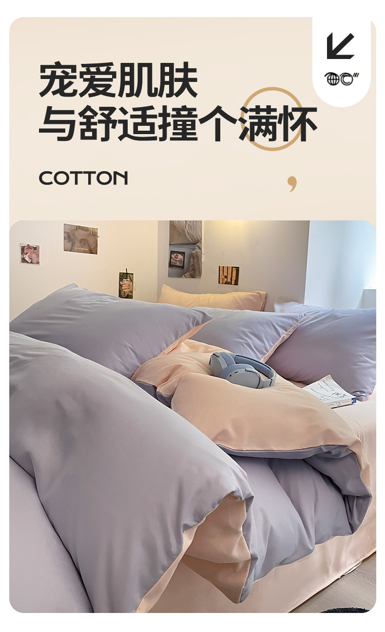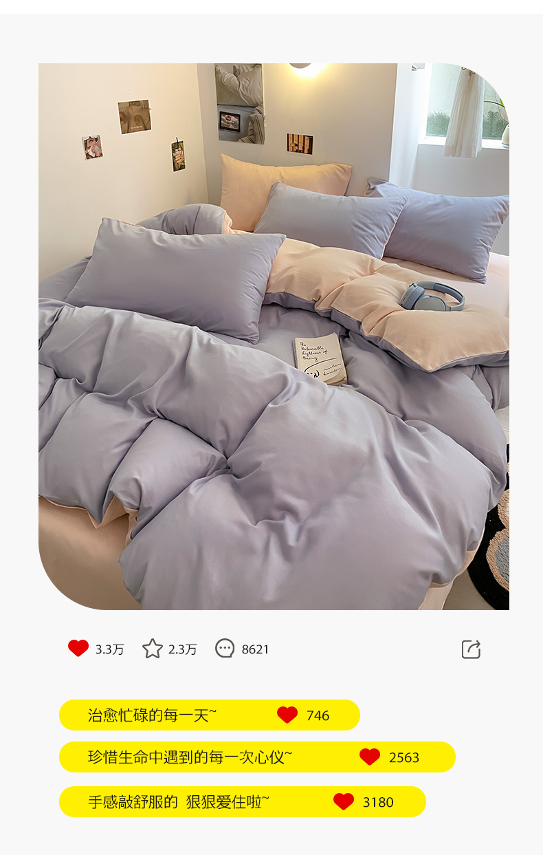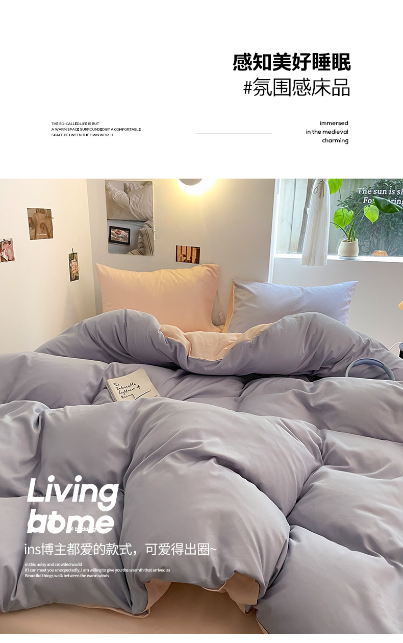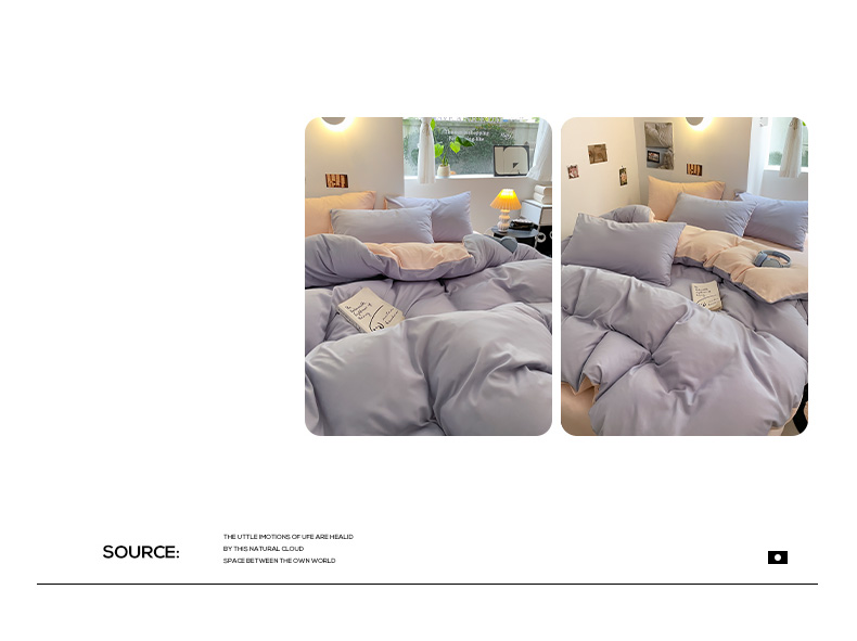 当前位置: 91家纺网 > 商品网购 > 床品套件 > 四件套 > 磨毛活性四件套 > 米粒 2024新款纯色简约双拼磨毛四件套 紫+粉雨
