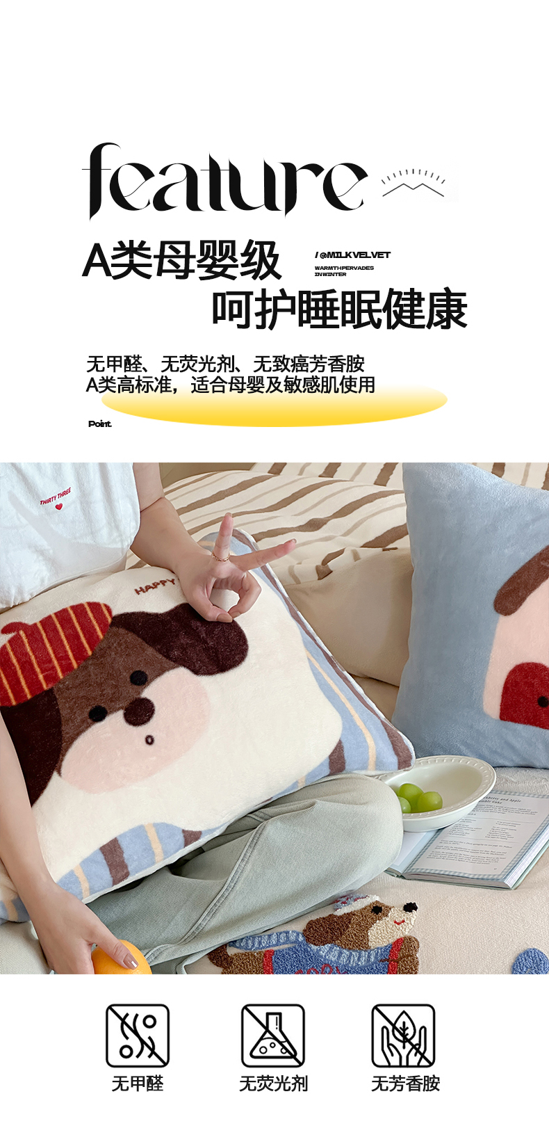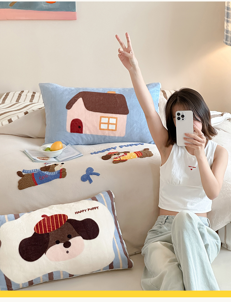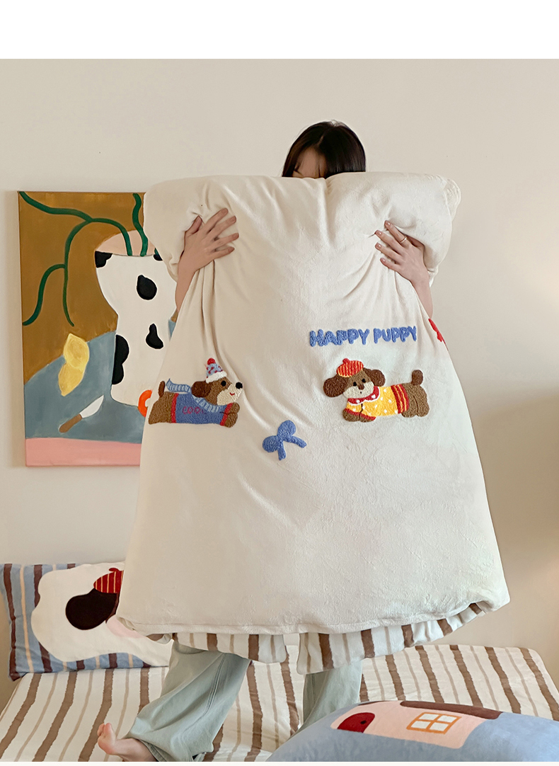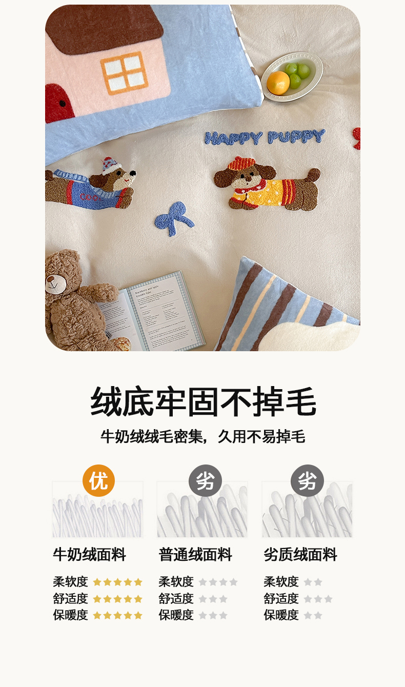 当前位置: 91家纺网 > 商品网购 > 床品套件 > 四件套 > 牛奶绒四件套 > 桃子家居 2024新款A类毛巾绣立体数码印花可爱卡通圣诞印加绣加厚牛奶绒系列四件套 绒印加绣-奶油欢乐狗