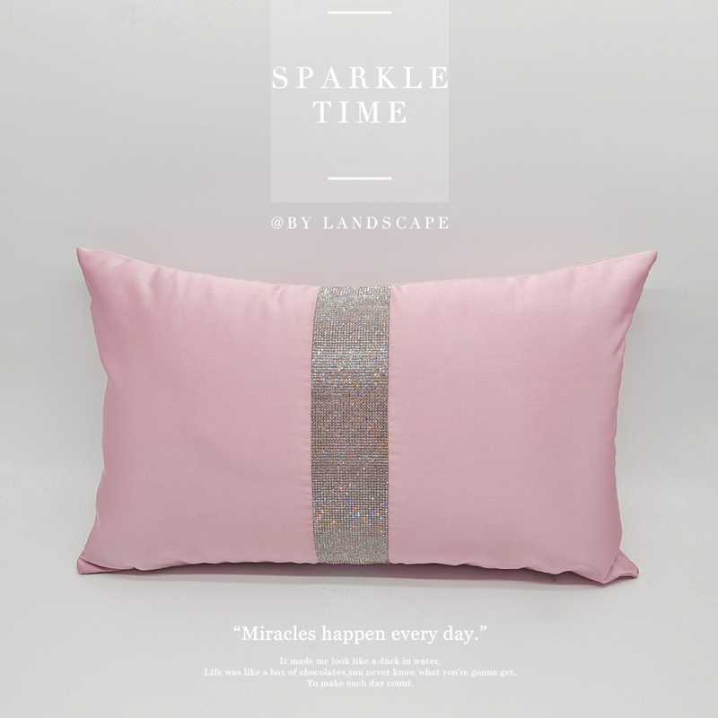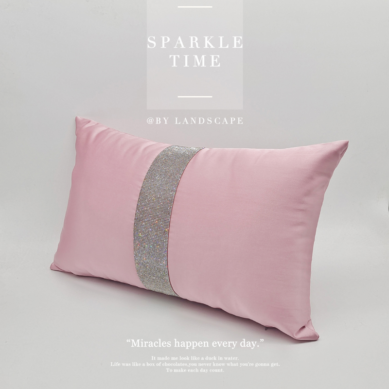 (总)澜屿 新款茶花轻颂镶钻小抱枕装饰枕腰枕枕芯,白,灰,香槟,曜黑,玉粉