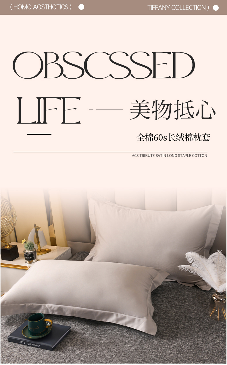 (总)星芯合家纺 2024新款全棉60支长绒棉枕套,高级灰,香槟色