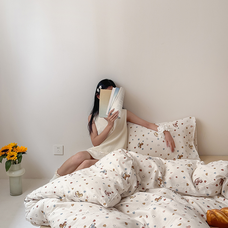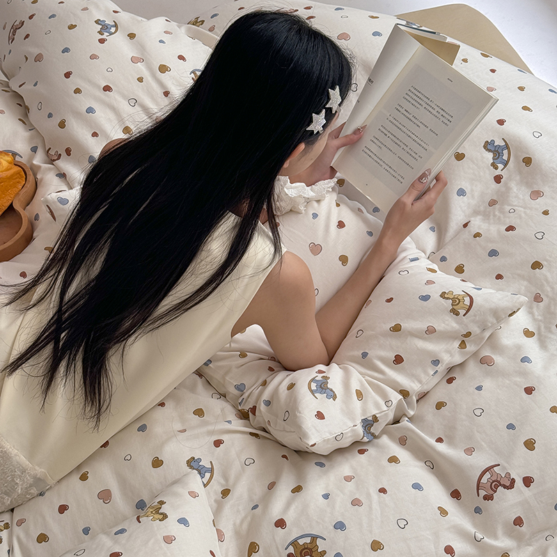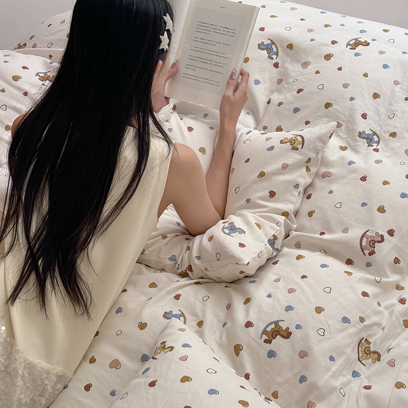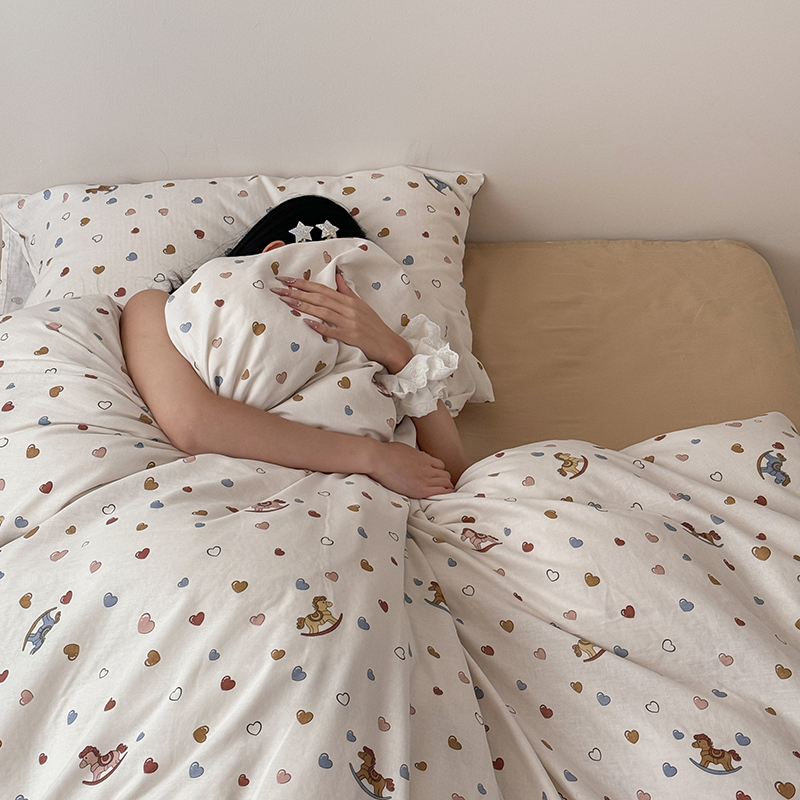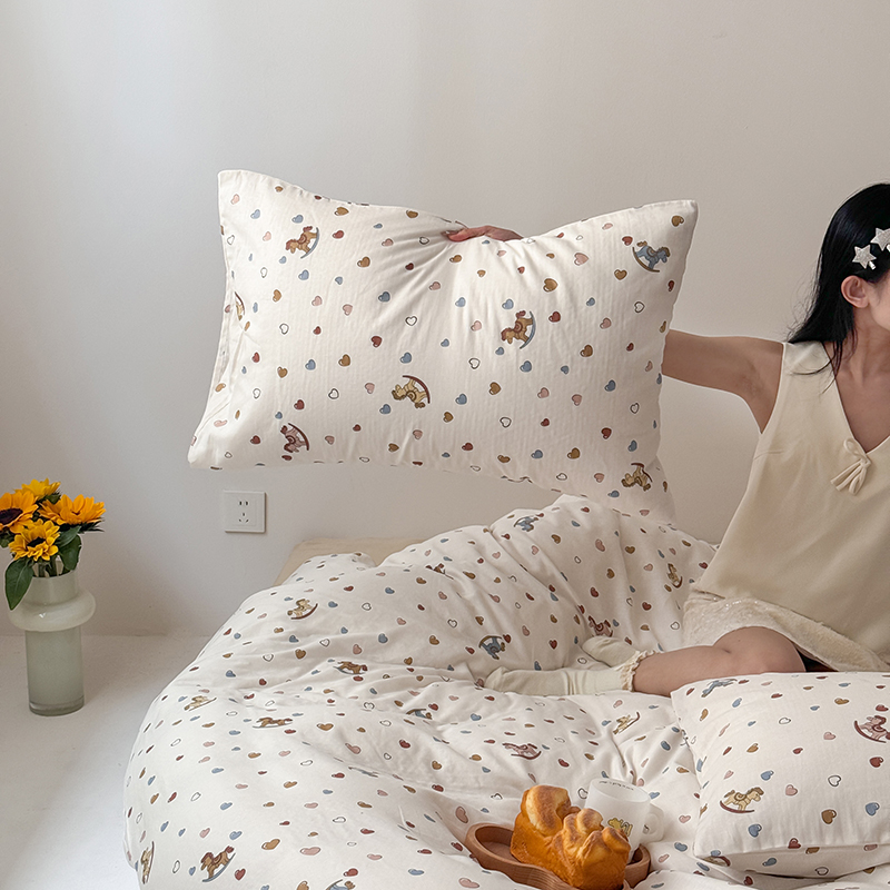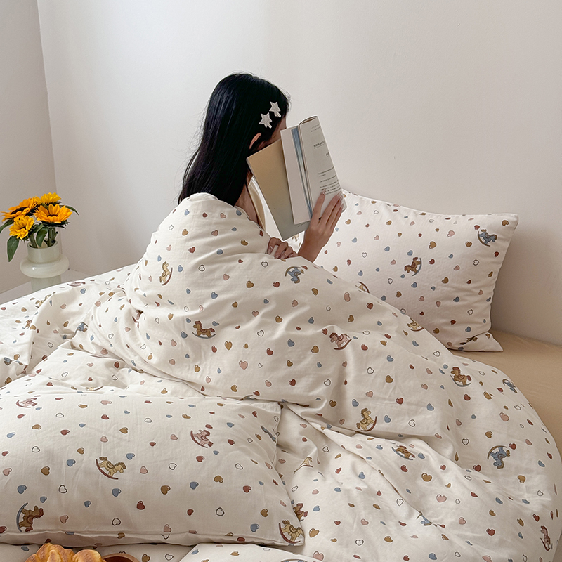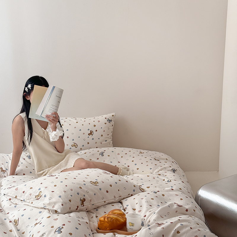当前位置: 91家纺网 > 商品网购 > 床品套件 > 四件套 > 全棉普通四件套 > 2025新款A类ins奶油风卡通全棉双层纱系列四件套 木马梦幻咖