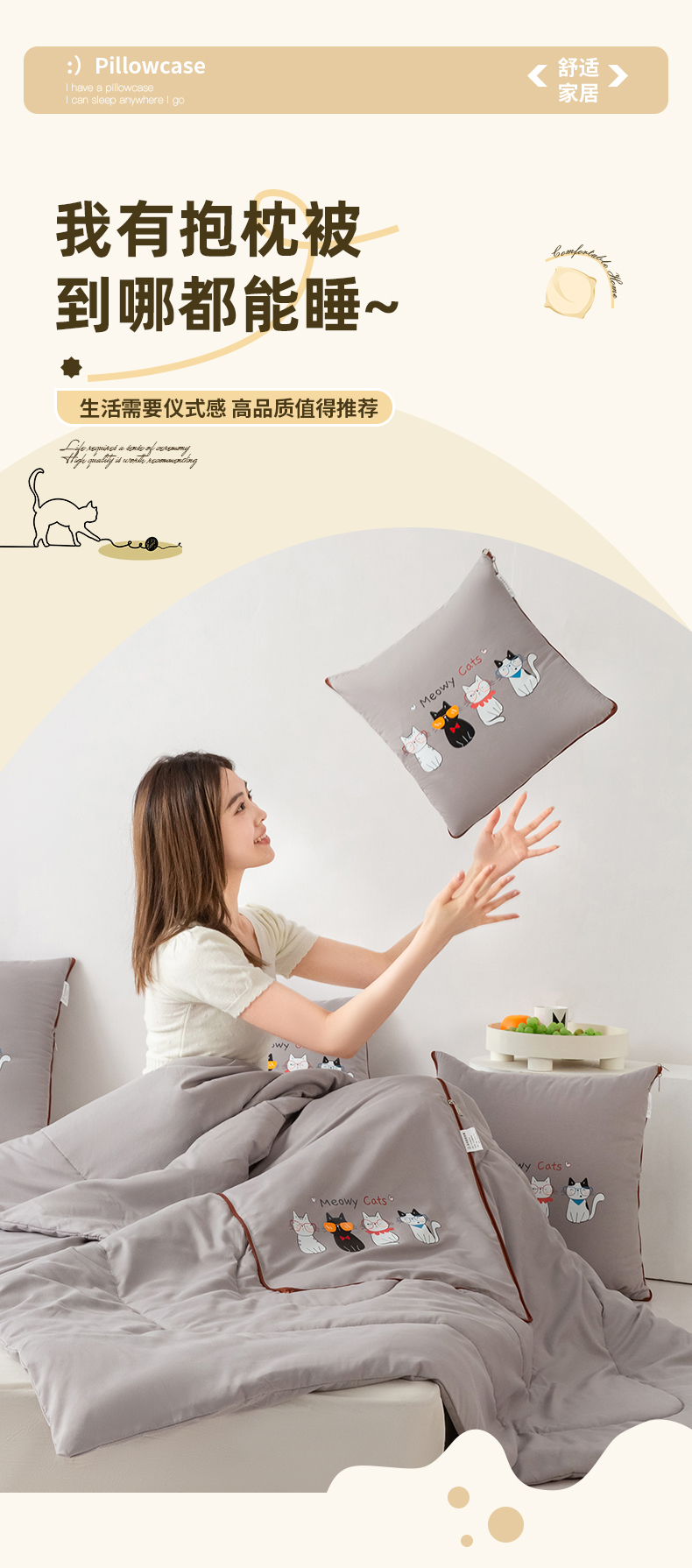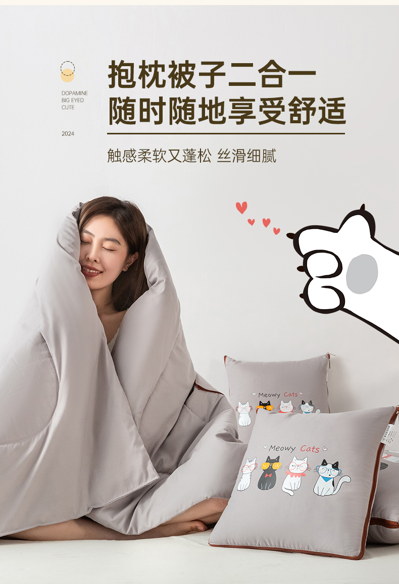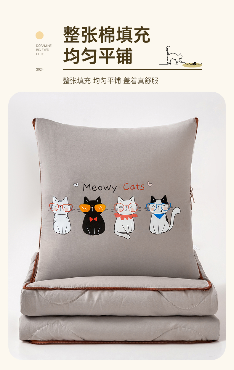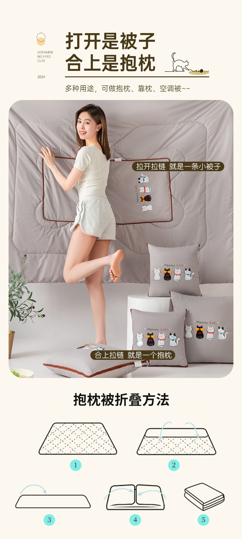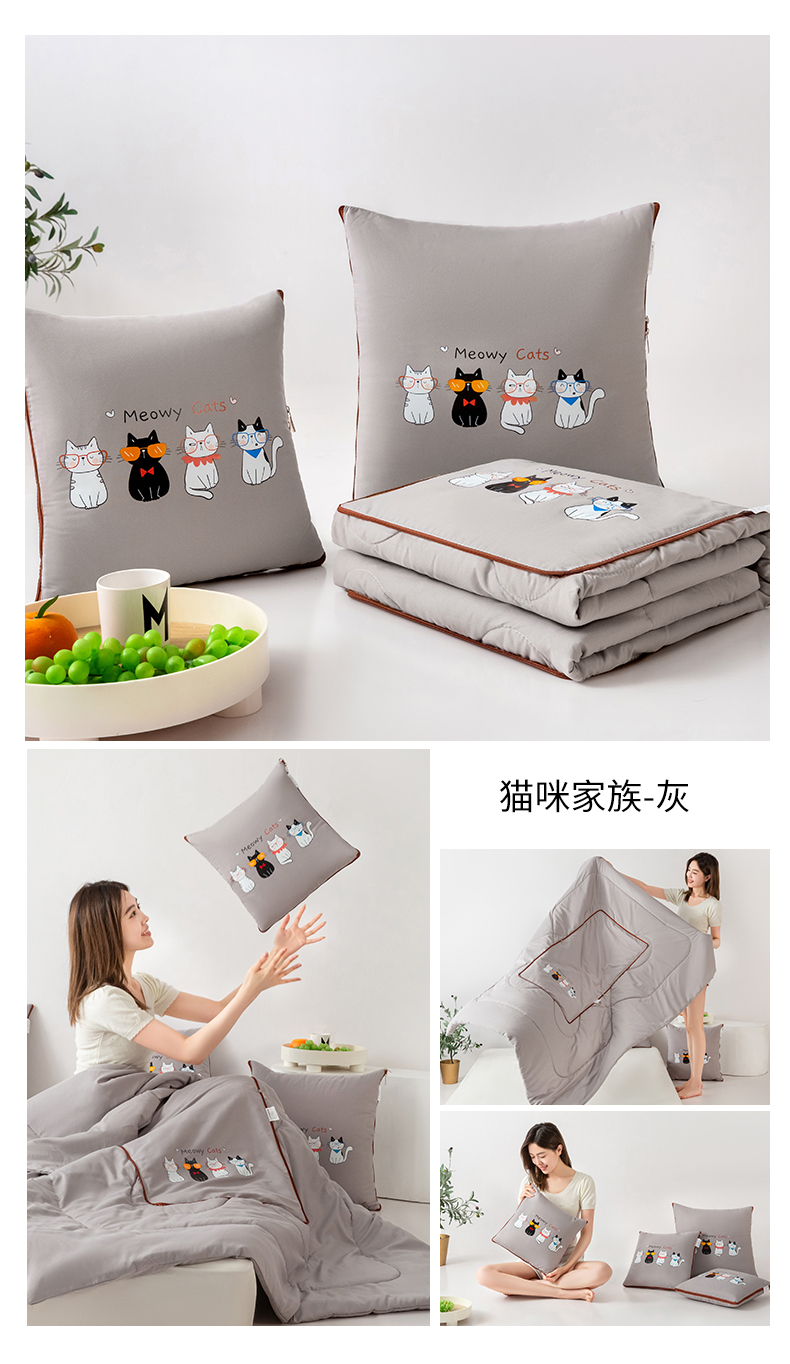 商品名称:2025新款猫咪家族四季款抱枕被 猫咪家族-灰